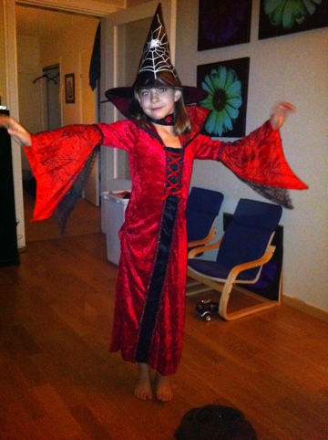Sara vart iaf toksnygg med sminket och klänningen. Riktigt grym Häxa..