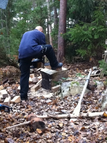 Så underbar dag vi haft. Varit ute på tomten sen 12. Sågat ved till vintern, krattat bort massa löv från tomten, eldat och klippt ner sly. Barnen har fått grilla korv över elden och bara haft mysigt. Dom har till och med fått ”tälja” med kniv :-O