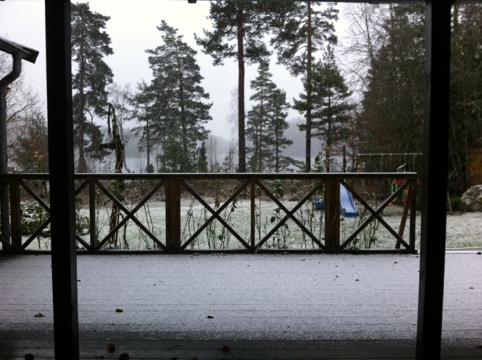 Efter deras första ”raid” i snön, så åkte vi in till Södertälje och handlade. Köpte två ljusslingor på Rusta, som nu sitter på altan-räcket på landet, & mat på Coop.