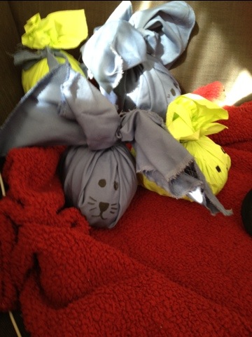 Det blev 4 små kaninungar som kommer gömma sig ute på landet så får barnen leta. Jag tyckte jag var jätte kreativ:)