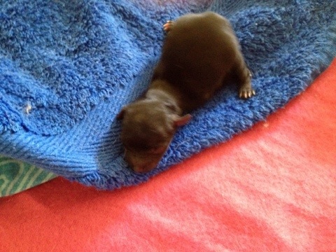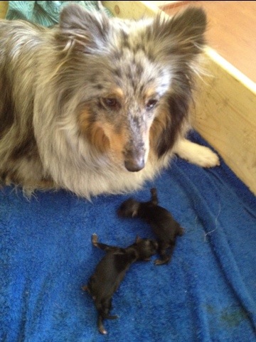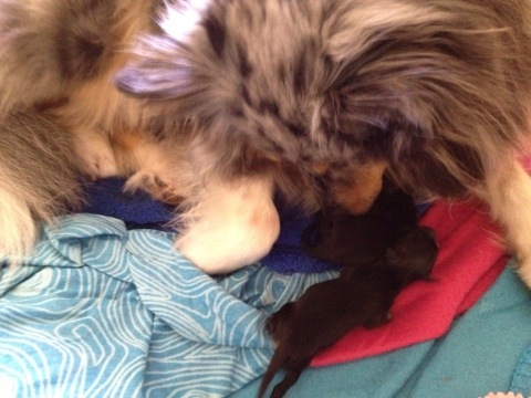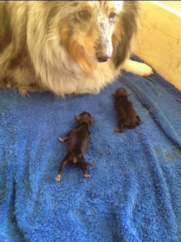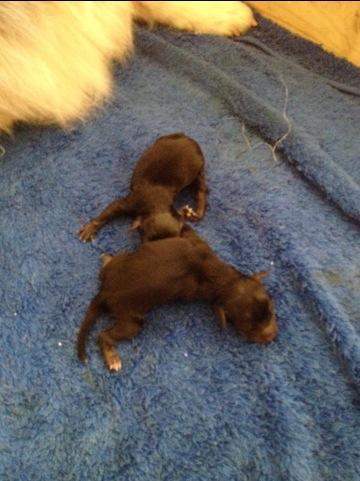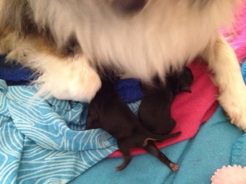 Min mammas vovsing Krissie fick 2 valpar idag! Så himla söta och små och fina! En hane & en Hona! Sjuan & Elvan!!