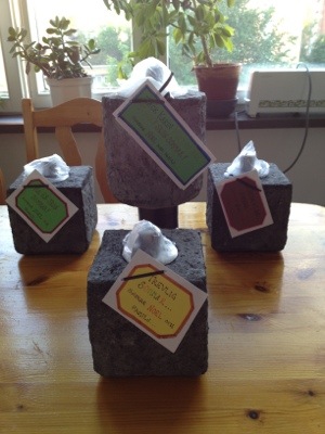 Fick veta imorse när jag lämnade Noel att en av hans fröknar jobbar sista dagen imorgon, sen slutar hon. Lite tråkigt. Hon ska tillbaka upp till Åsen, där hon jobbade innan. ”Vi” hade henne bara till låns ca 8 månader.. Så kvickt iväg efter jobbet och hittade oljelampor som såg ut som stenar, som vi köpte till alla hans pedagoger som sommar-avslutnings present! Sen satt vi har och pysslade ihop små fina sommarhälsnings kort och satte på! Hoppas det är en bra present! Jag skulle blivit väldigt nöjd iaf! Kan man ha både på balkong/uteplats, eller landställe! Den stora i mitten (ni får se på bilden som kommer) är till hon som slutar!