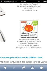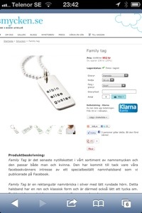 Idag, pĂ„ underBARA BARN mĂ€ssan sĂ„ tĂ€vlade jag i Familjesmycken.se‘s monter om ett smycke som har ett totalt vĂ€rde av 1190:-. Det Ă€r en avlĂ„ng silverbricka som det graveras in namn pĂ„. Man kan ha upp till 5 namn. Jag behöver dock bara ”3” namn. Till att börja med, bara 2….