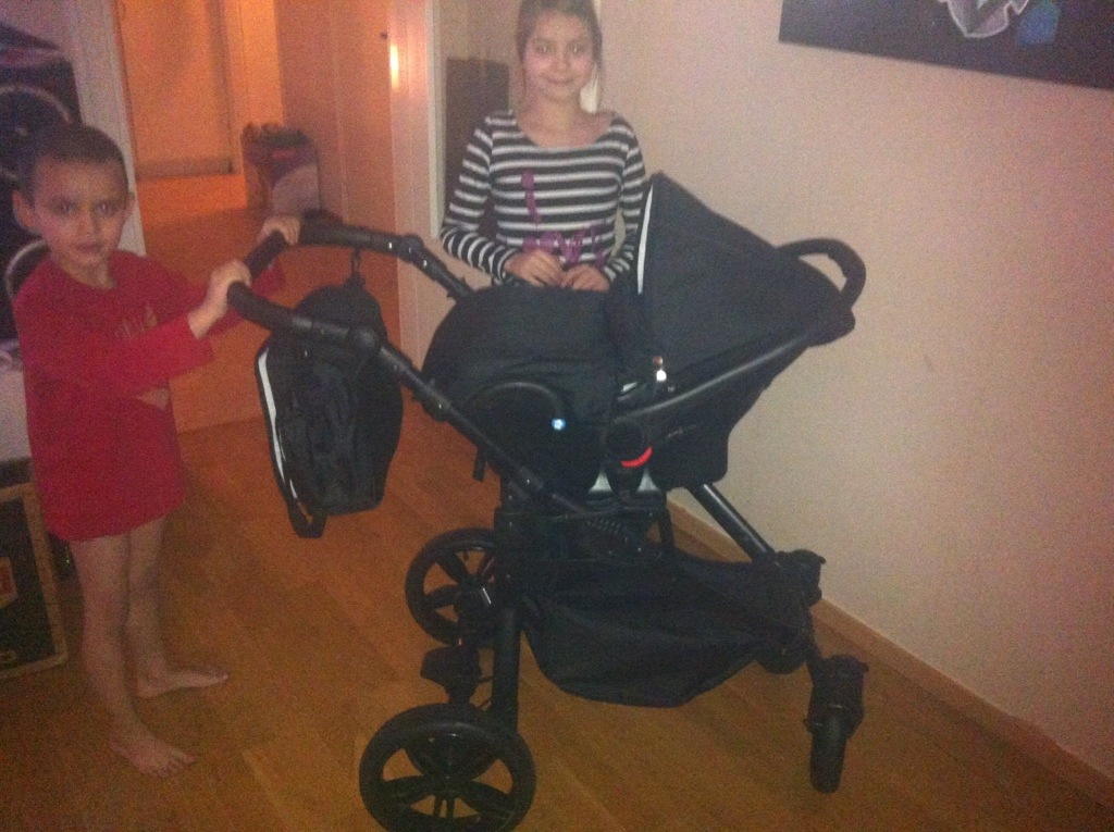 Jag och Noel vart eld och lågor, slet upp kartongen och började operation vagnsbygge!! Glädjeruset la sig fort, ”säkerhets-gummi-clipset” är trasigt!!! Men, av erfarenhet vet jag att det gör egentligen ingenting. Det går att limma ihop eller tejpa ihop, men självklart klagade jag direkt till Bebeqo.. Fick heller inte med myggnät, regnskydd eller blöjförvaringen som var utlovad i annonsen. Men som sagt har mailat både Bebeqo och Groupon och hoppas på en riktigt saftig kompensation, och med lite tur kanske en ny vagn, eller ett nytt chassi iaf, för det är där clipset sitter.. Lägger upp bild så kan ni se->;