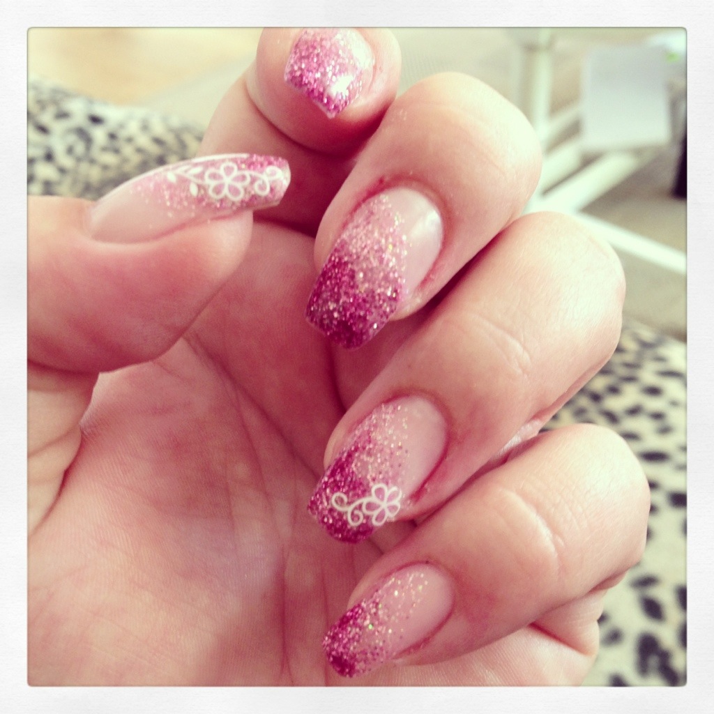 Istället när jag kom hem efter att ha lämnat Noel, så tog jag fram min virkning. Körde 5-6 ”repor” och sen åkte filen fram.. Nu äntligen orkade jag ta tag i mina naglar.. De har sett fördärvliga ut nu i 1,5 vecka, men jag har bara inte orkat ta itu med dom. Men nu är de gjorde. Valde att ha samma dekoration som jag gjorde sist, bara kortade av dom, och fyllde på med glitter.