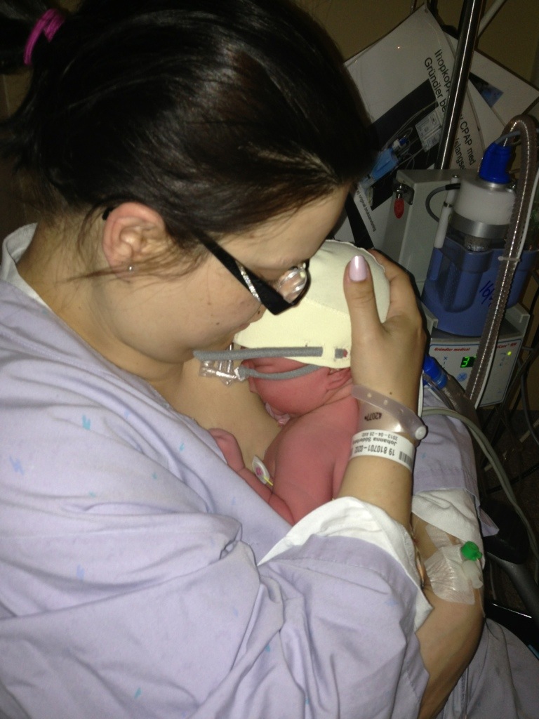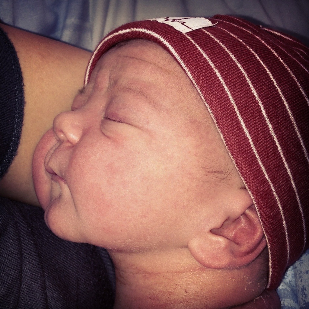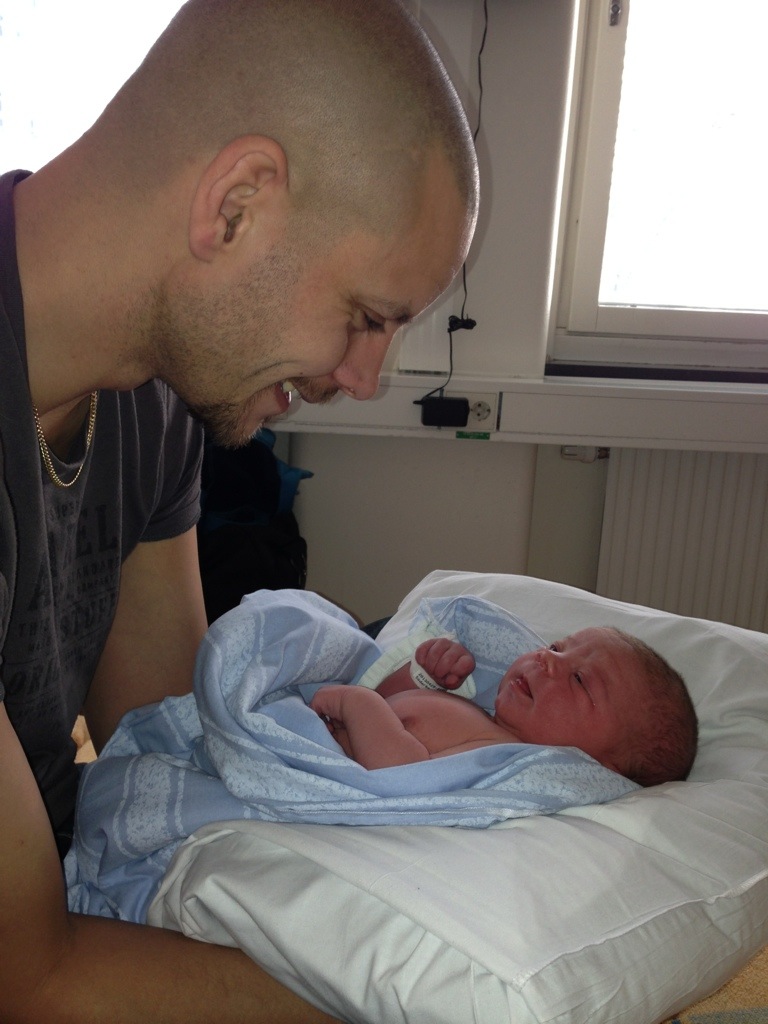 Han hade lite problem med andningen då han fötts, så han fick bo på neo i 10 timmar.