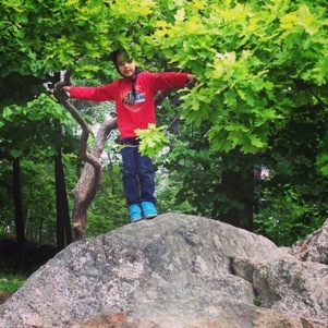 Vi kom ut vid 14 (tror jag) och solen sken. Robert klippte gräsmattan och jag satt hela 10 minuter i solen på altan innan Max vaknade och begärde mat!