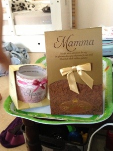 Blev väckt av en sjungande make och de stora barnen,Max låg såklart med mig i sängen, trofast vid tutten! Jag fick presenter, frukost och massa kärlek!! Fick chokladtryffel av Noel och ett vackert ljus av Sara!