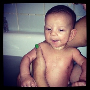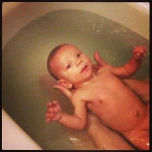 En av de bästa presenterna jag fick idag, var helt gratis!!! Jag kunde bada med min sistfödde och det var såååååå mysigt och gosigt!!! Och Max njöt av det den här gången 🙂