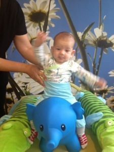Jo, igår somnade Max vid matbordet!! Ja, i min famn såklart, han var så trött min lilla flin-gris!