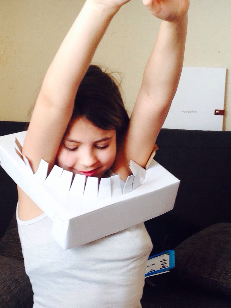 Måste bara lägga upp 4 bilder till, första är på min klumpiga dotter som på nåt vis lyckas fastna i en kartongkrage som satt runt Niels ena present! Jag fick klippa av henne den, kartongen skar in under armarna på henne!!