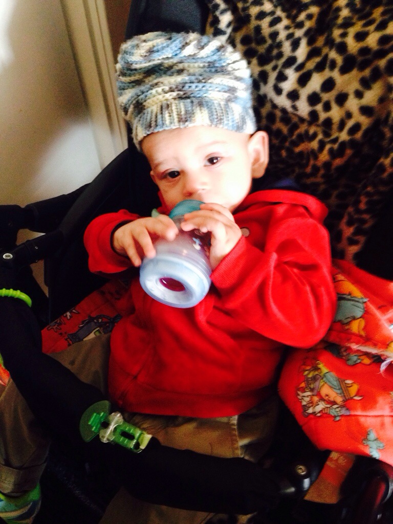 Noel somnade snabbt i vår säng nu på kvällen, riktigt trött efter idag!