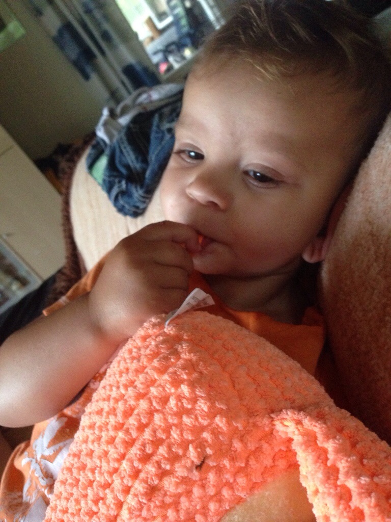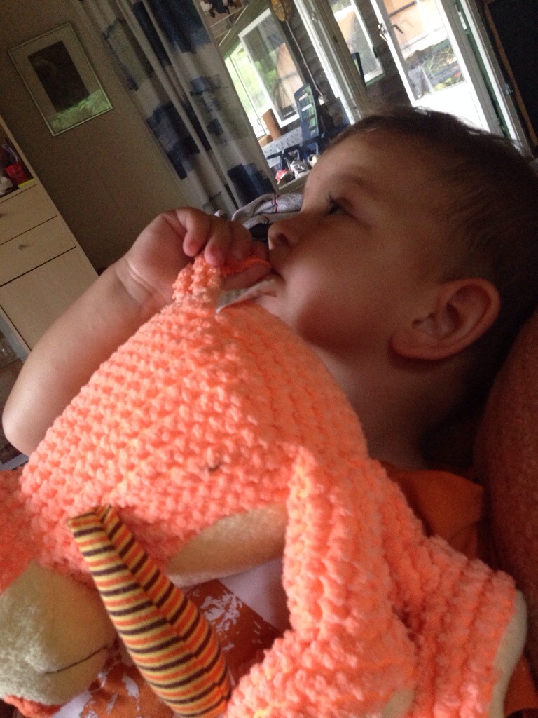 Max hittade sin nalle och började suga på hans lilla svans.. Det var tydligen jättegott!
