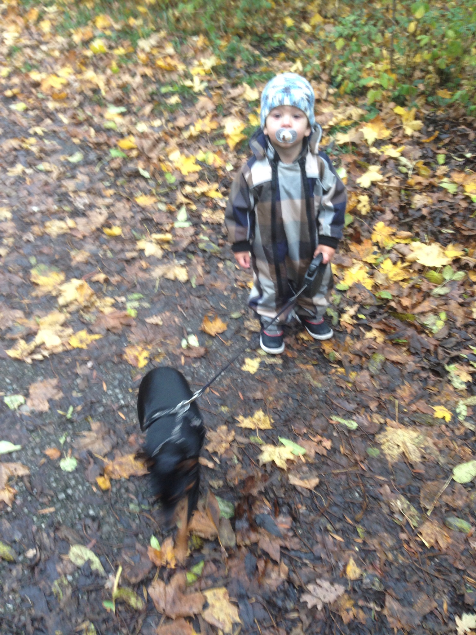 Ute och rasta Ziri som vanligt på morgonen, Max gick och plockade löv, men det blåste så himla mycket så han var inte så supertaggad på promis idag.. Inte Zirpi heller! Hon frös!
