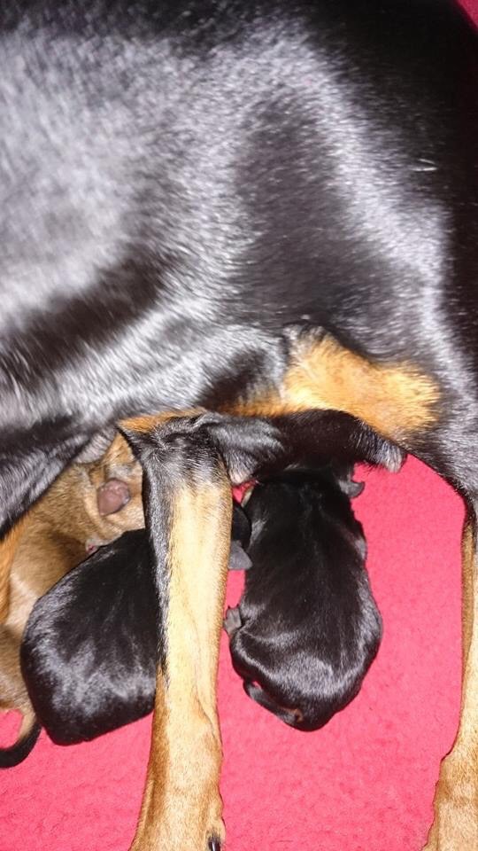 Igår kväll (16/11-14) blev våran Zirpivirpi mamma!! Hon fick 2 black & tan hanar, 1 black & tan tik & och 1 röd tik!