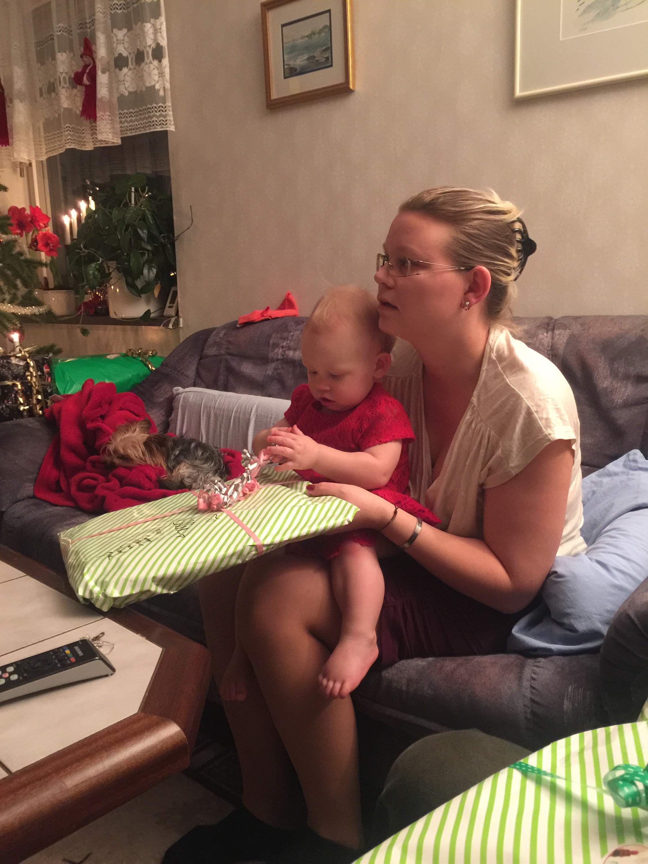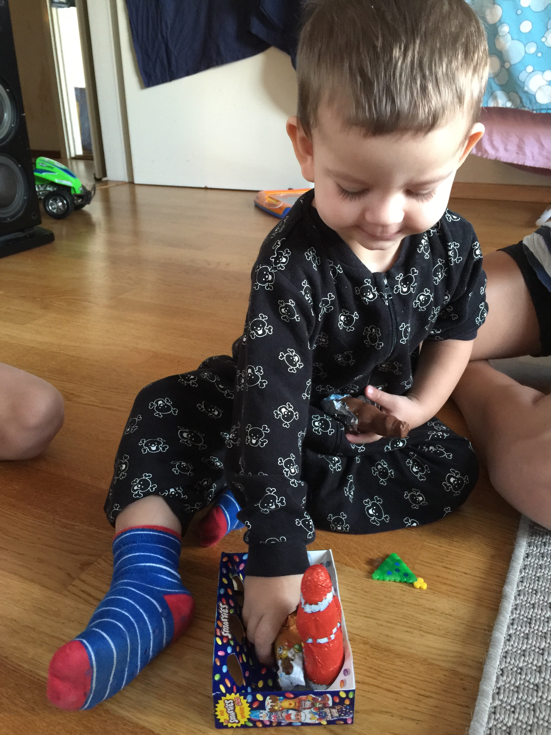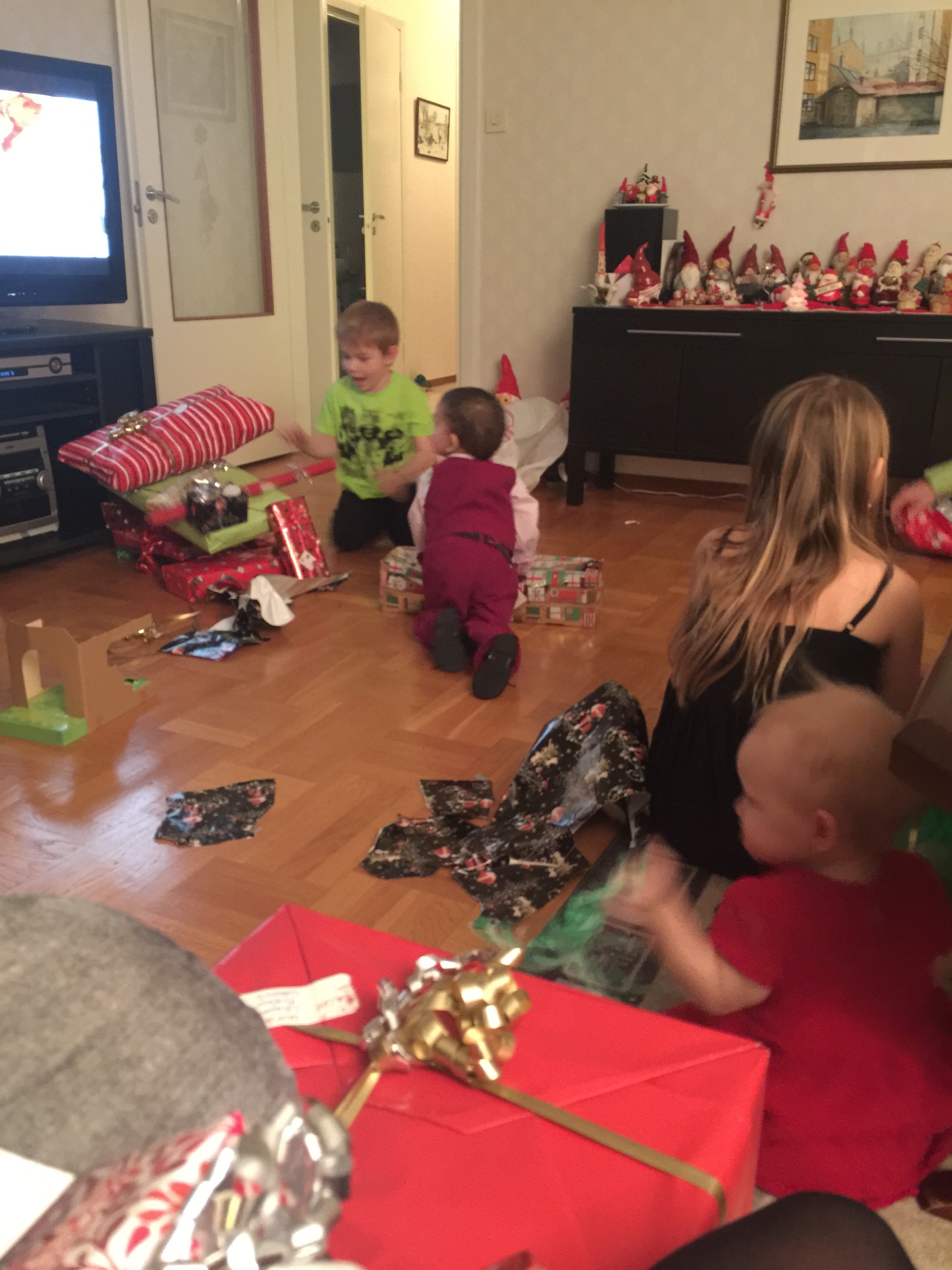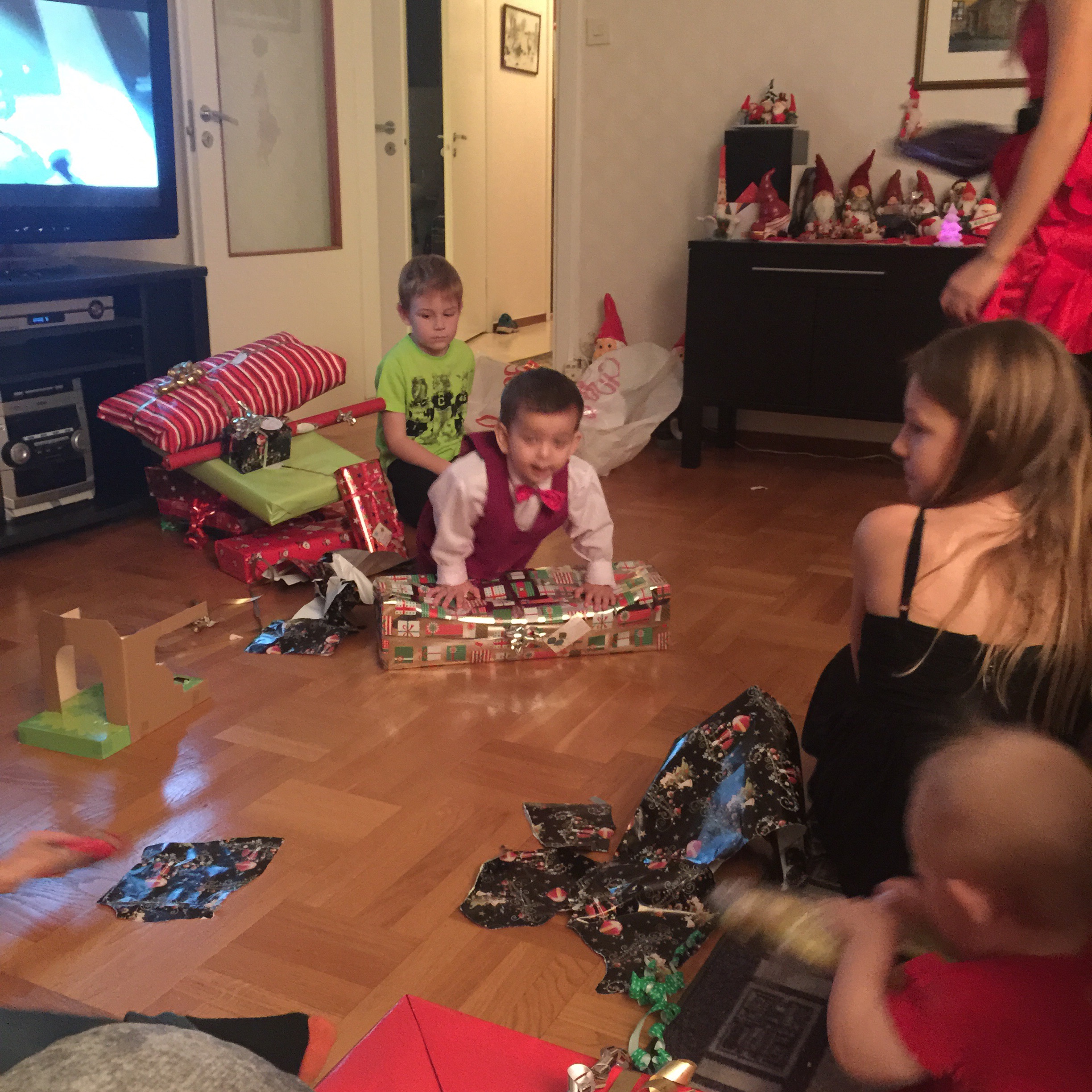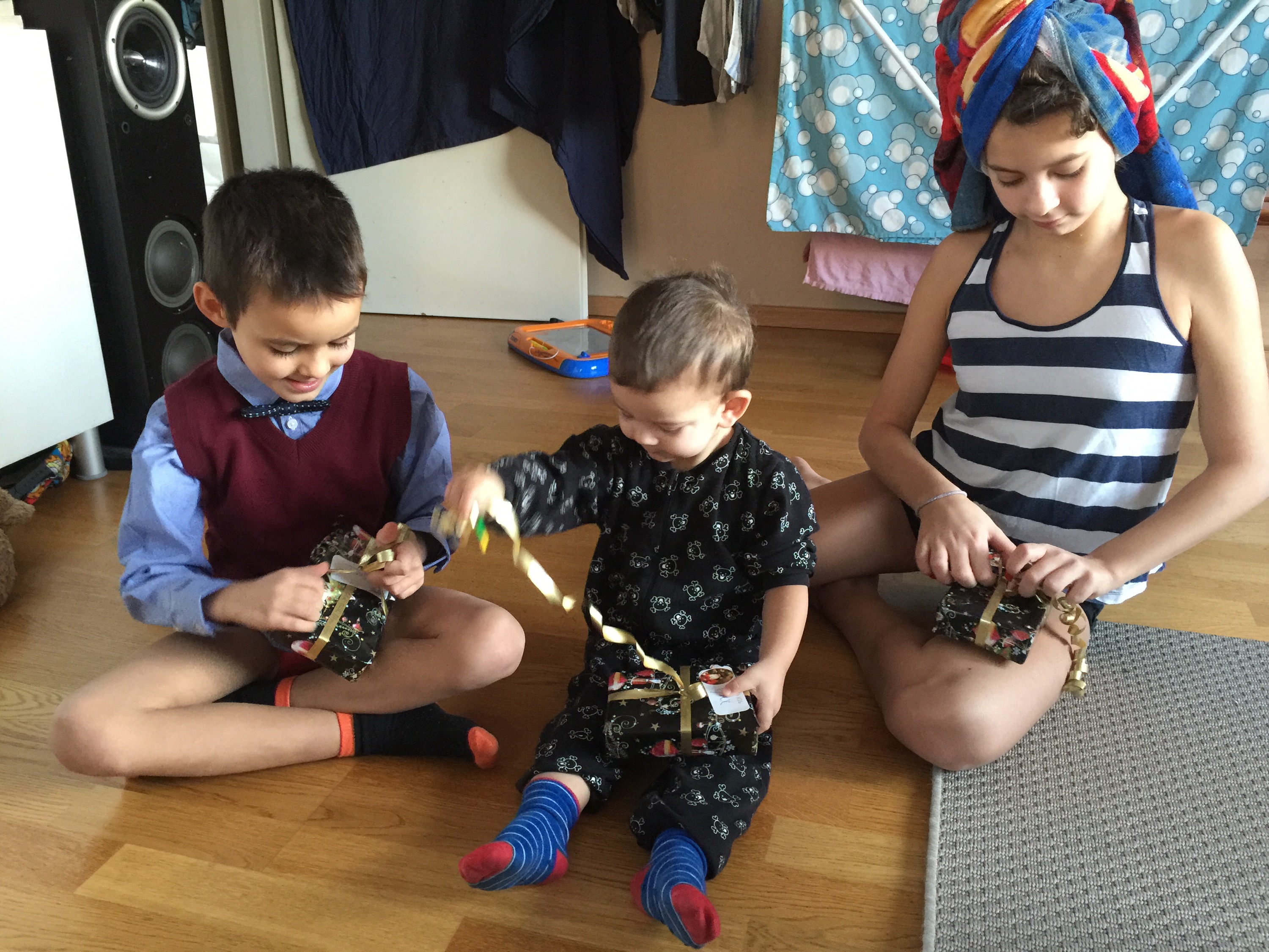 Barnen får sina morgonpresenter 🙂