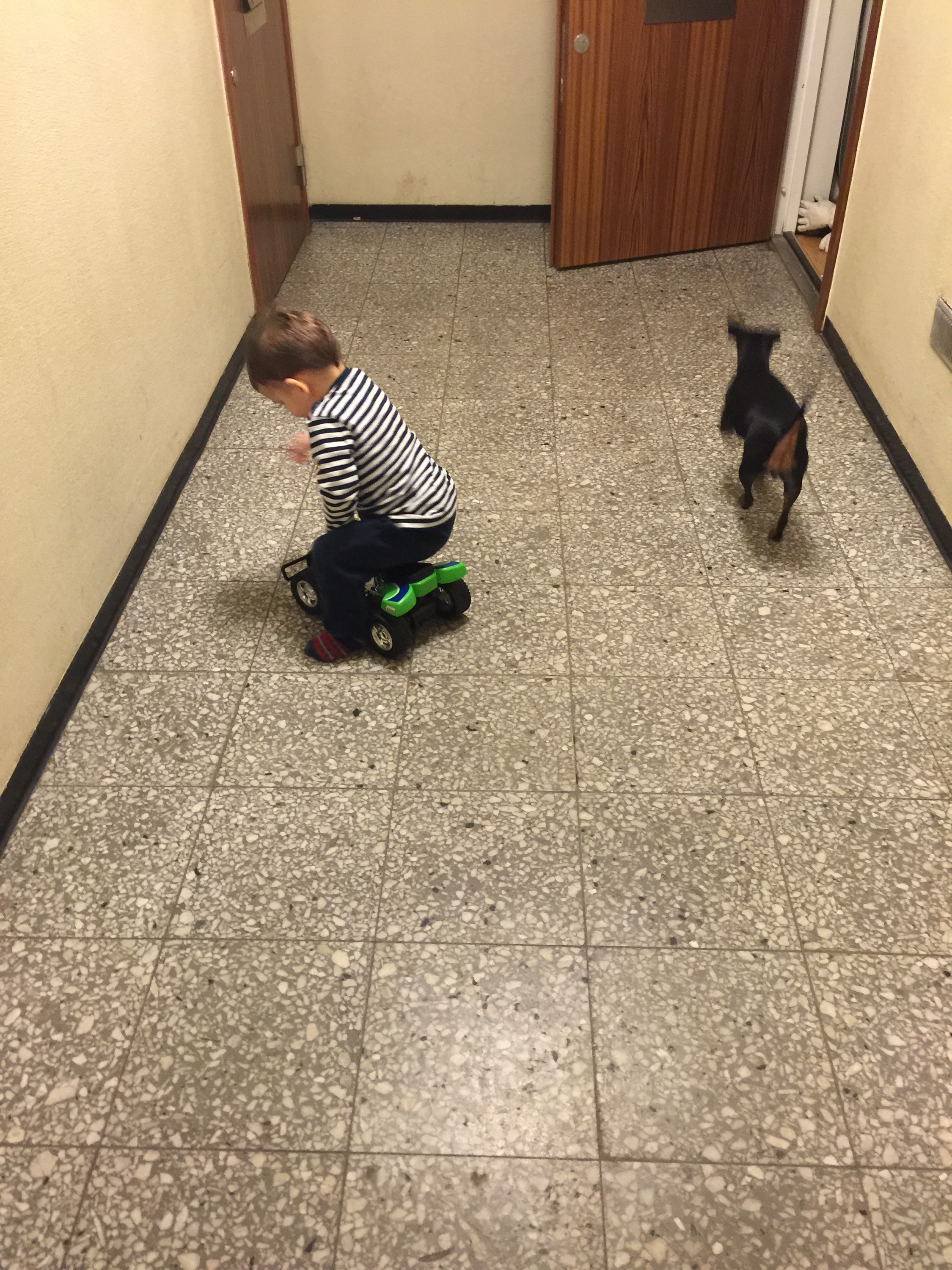 Max och Noel var uppe hos Maud när vi var på mötet, och Max hitta en leksak han glömde kvar på julafton!