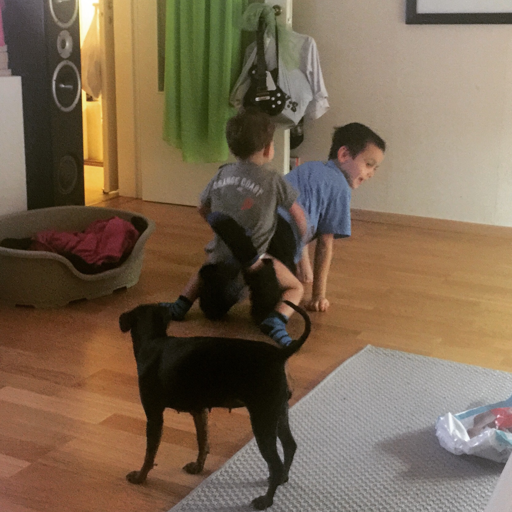 R och Max kom hem igen 12:30. Så det tog ett tag för dom där nere..