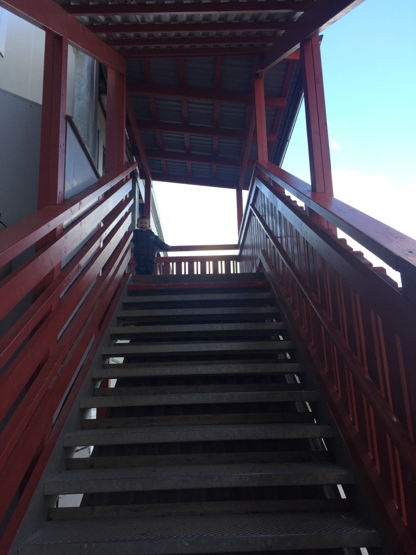 Sen så stolt över att själv få gå upp för låååånga trappan upp till Storebrors klassrum..