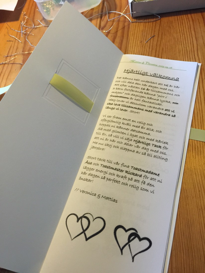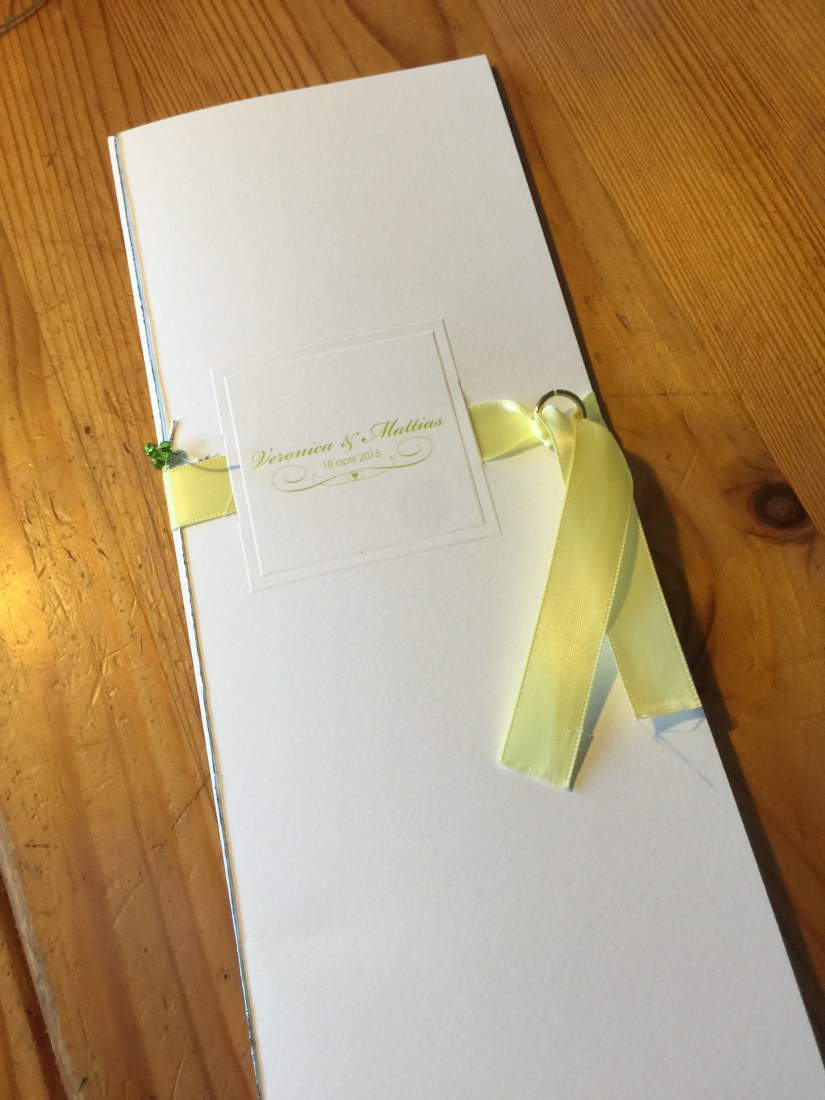 Dom blir faktiskt super bra, och kul att citron-temat syns tydligt på festprogrammen. Lime är ju nästan övertydligt, på klänningar, blommor osv.. Ja, även gästboken går i lime 🙂