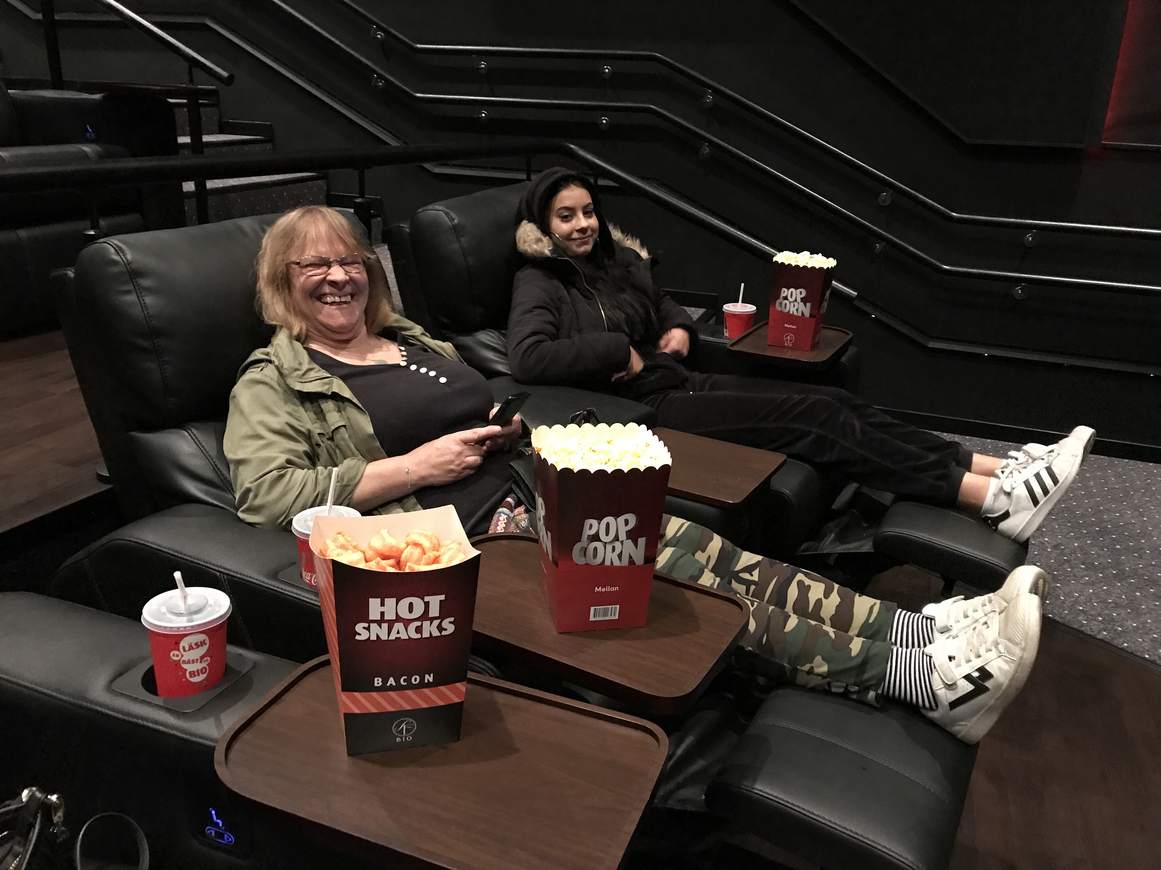 Och vi gick på Vip-bio! Första ggn för oss alla 3 & det var en upplevelse i sig. Sjyssta fåtöljer med inbyggt fotstöd, vridbara brickor och djupa och bra dryckeshållare. Det var Nice 🙂