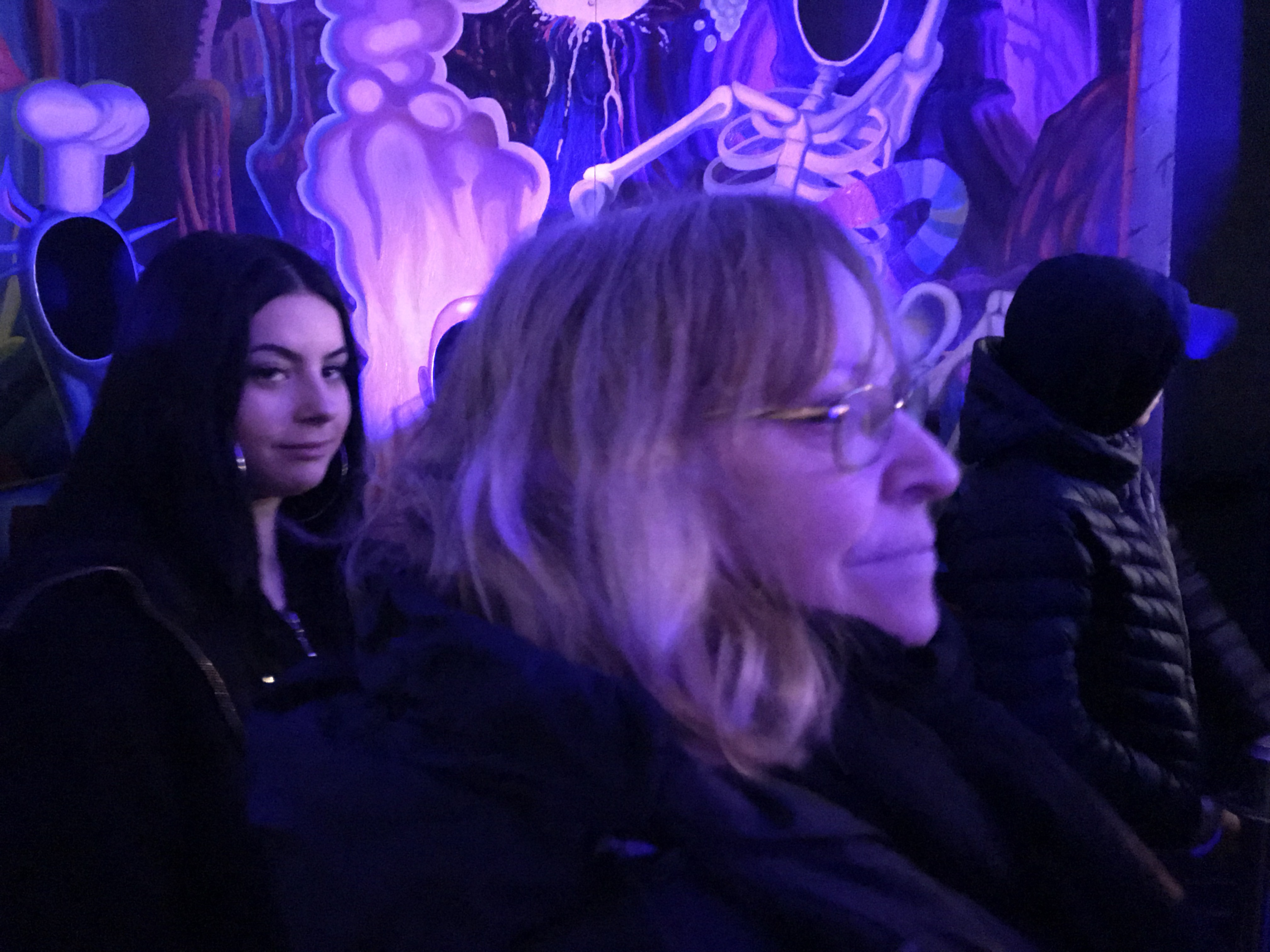 Vi var där strax efter 16. Då var det ganska lugnt. Alltså väldigt mycket folk, v ä l d i g t mycket folk. Det gick runt häxor, spöken, clowner och nån dödgrävare av nåt slag. Inte speciellt skrämmande egentligen, men kul inslag.