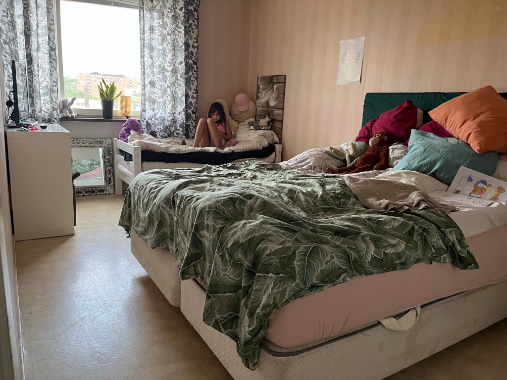 Idag fick jag nog! När jag kom hem i veckan så hängde rullgardinen snett och fästet på ena sidan var borta, så lösningen vart att kasta upp rullgardinen på ett gammalt gardingstångsfäste.. Såg ut som om det bodde 4 uteluggare minst i rummet. Frågade vart det andra fästet till gardinstången tagit vägen, svaret blev ”jag vet inte, barnen drog ner rullgardinen så jag bara kasta upp den”