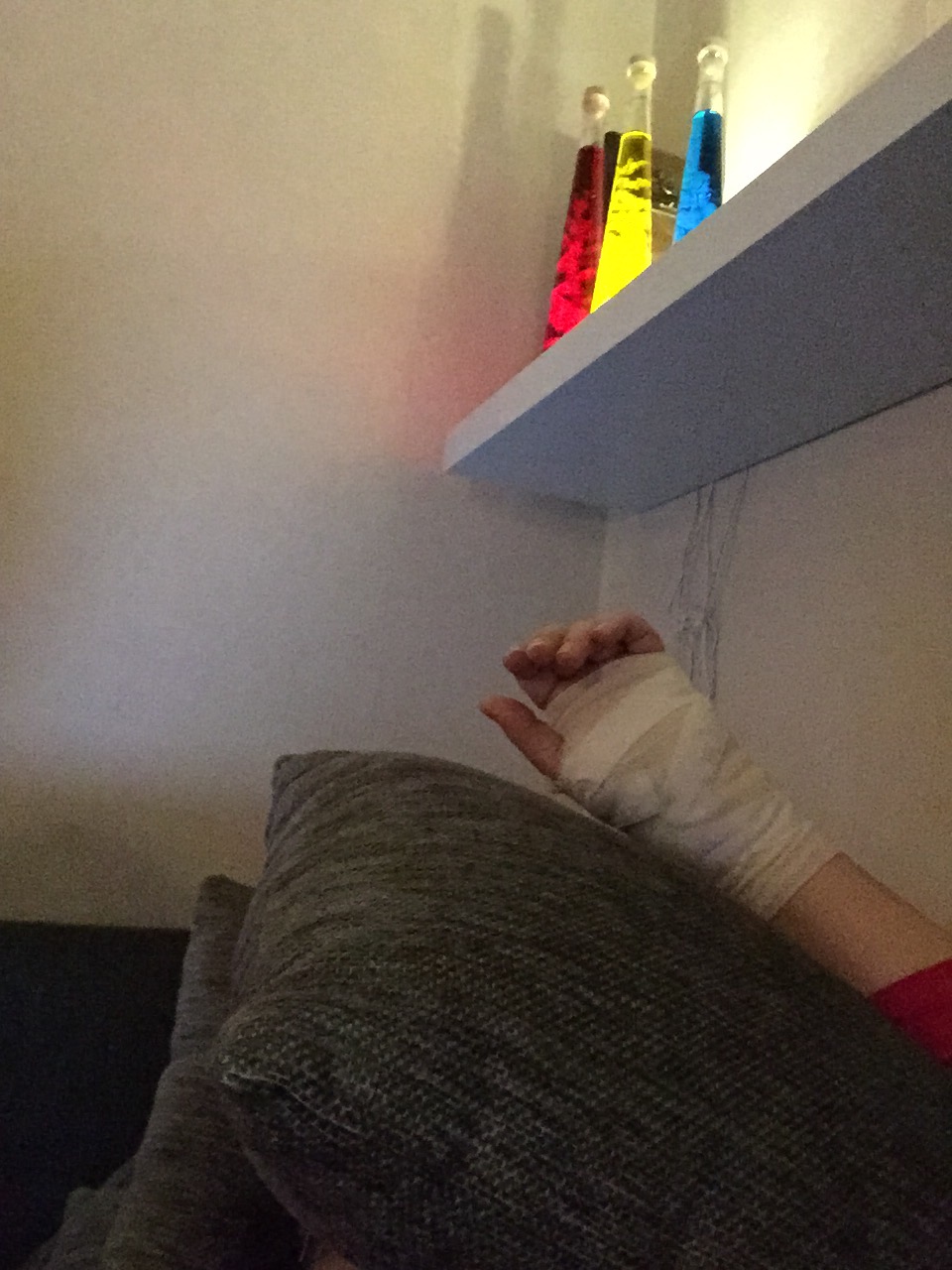 Satt i filt utan byxor på mig när Sara ringde, Max sprang runt i blöja, så det blev ordagrant att slänga på sig kläder & typ springa ner..