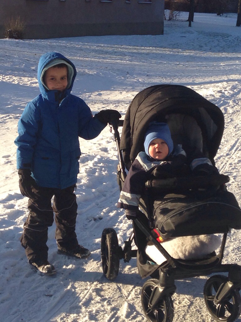 Har inte gjort så mycket idag, vi har ätit gröt, varit ute med hunden, sett till så Noel fått i sig astma-medecin. Max somnade i vagnen på promisen, så han sover just nu i vagnen i hallen!