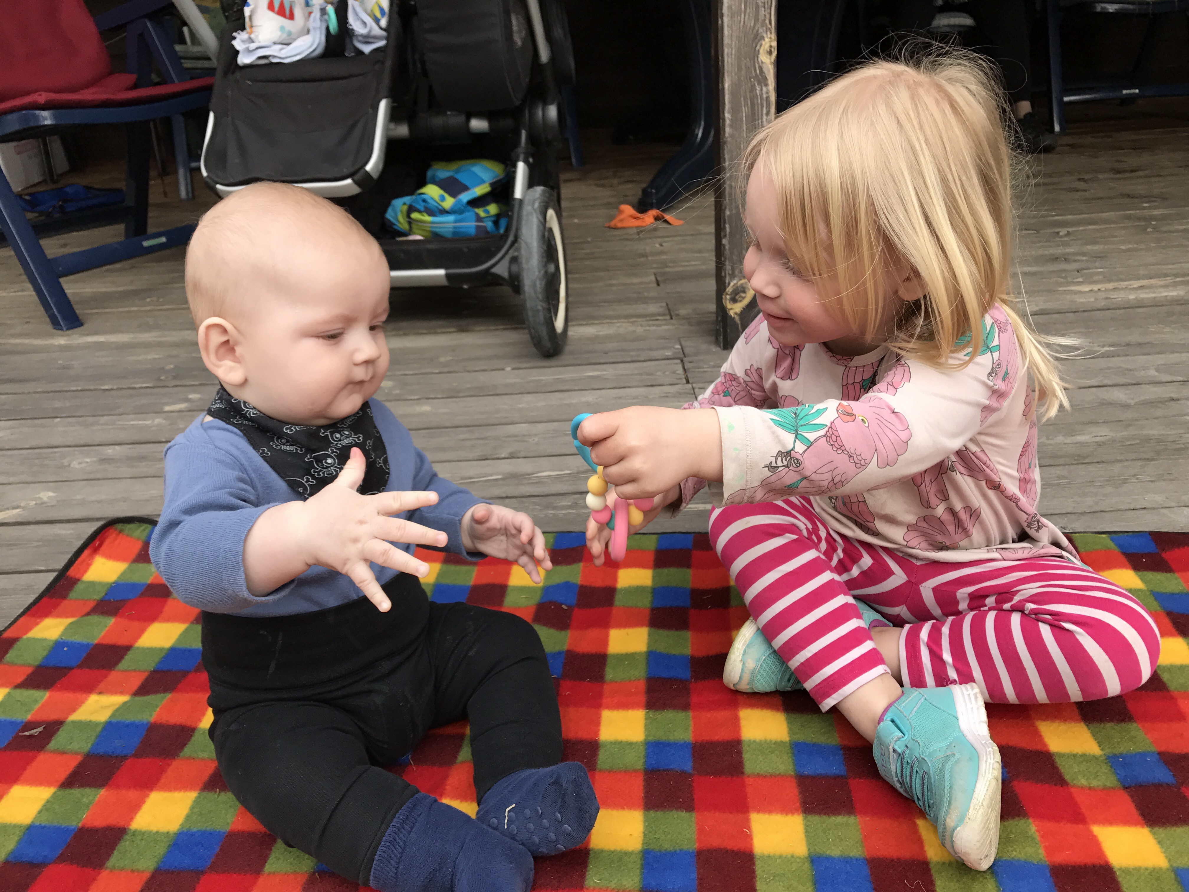 När kom hem till oss, så tog det knappt 15 minuter så kom Felicia. Hon och Sara hade bestämt sig för att gå på bio och se Baywatch. Mamma, jag & Robert och resterande barn (minus Sara & Noel) gick bort och hälsade på hos Peter & Tik. Tik hade köpt kläder till Sigge som hon ville lämna över. Han fick kallingar och linne. Så himla gulligt! Hon är ju helt tokig i honom. Vi satt en stund utanför dom i deras berså, pratade & skrattade. Lagom till att vi var på väg hem kom Bettan och släppte av Sara. Sen blev det inte så mycket action här hemma. Jag städade av i köket, fick en glasbit i foten för att min man lyckats tappa vår inlagda ingefära som ligger i en glasburk på golvet men glömde dammsuga efter sig. Blev så less så jag bröt ihop och börja gråta, och jag gråter väldigt sällan. Sara kom och krama om mig, så blev allt bra igen! Mer kramar åt folket!!!