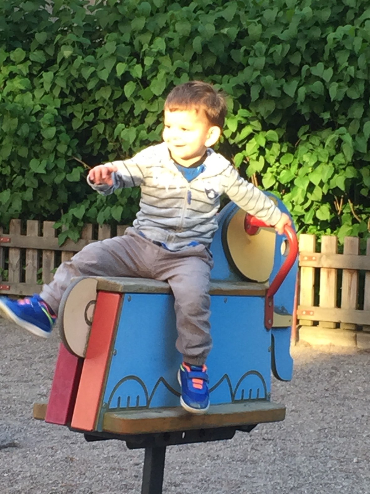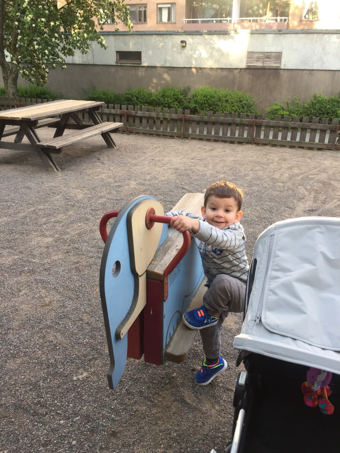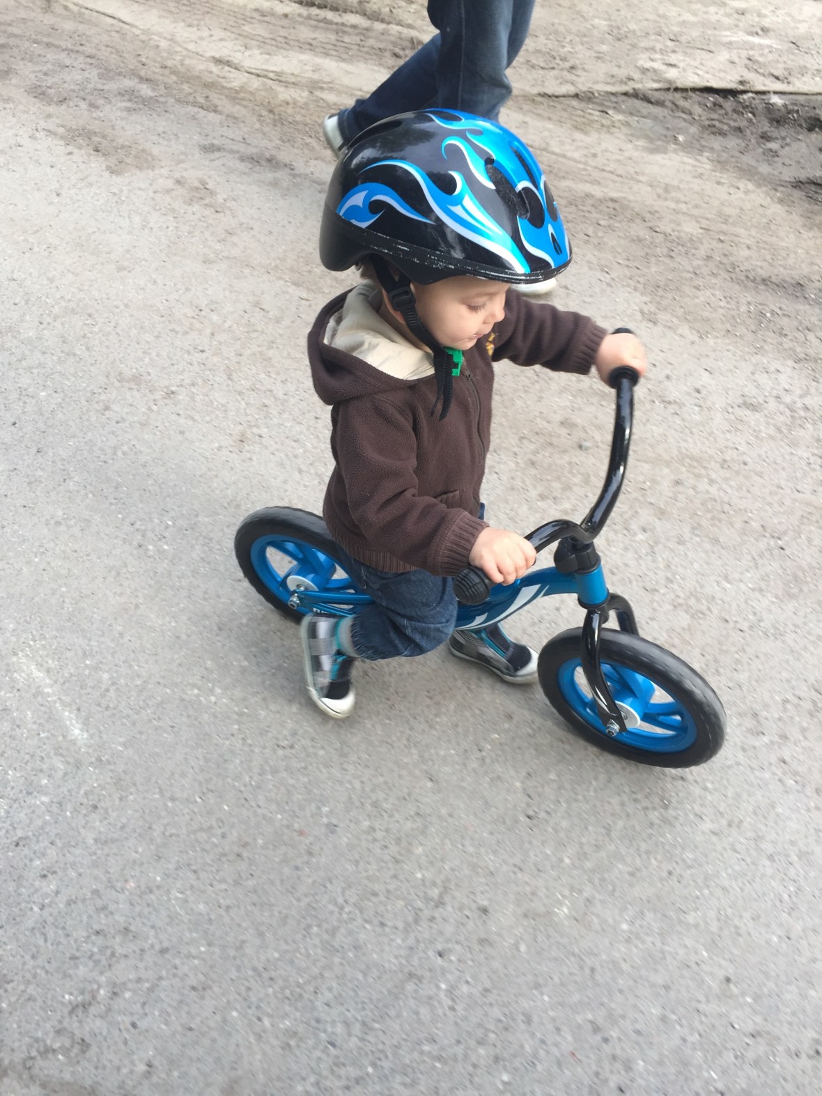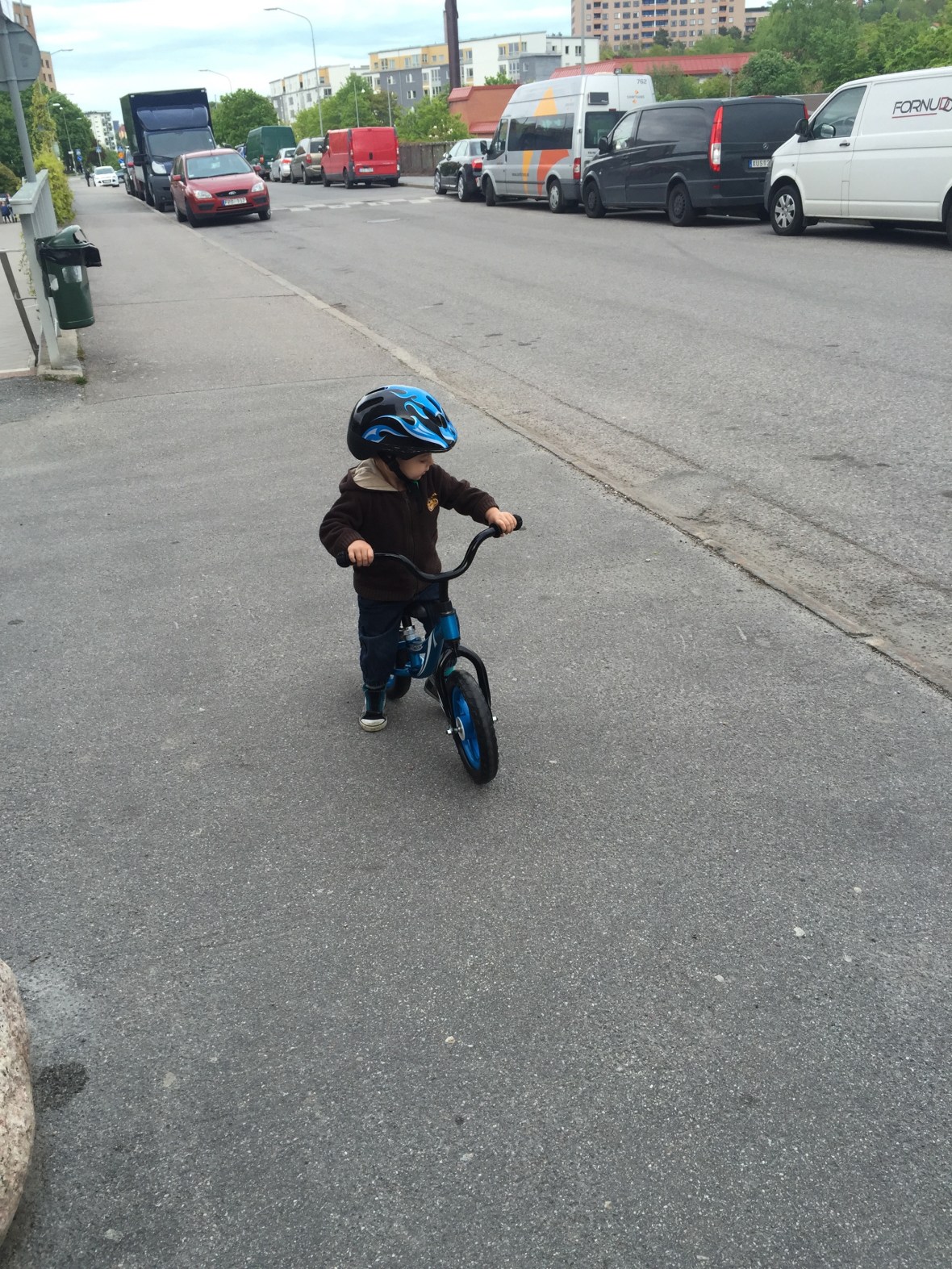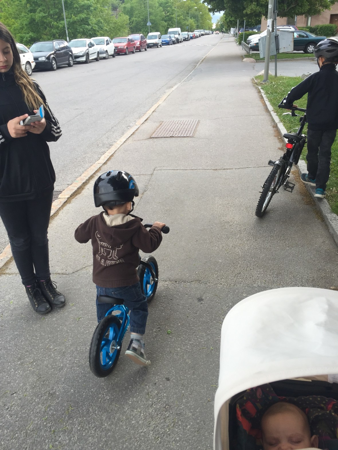 Efter middagen tog vi oss ut på promenad! Max fick äntligen testa sin springcykel 🙂