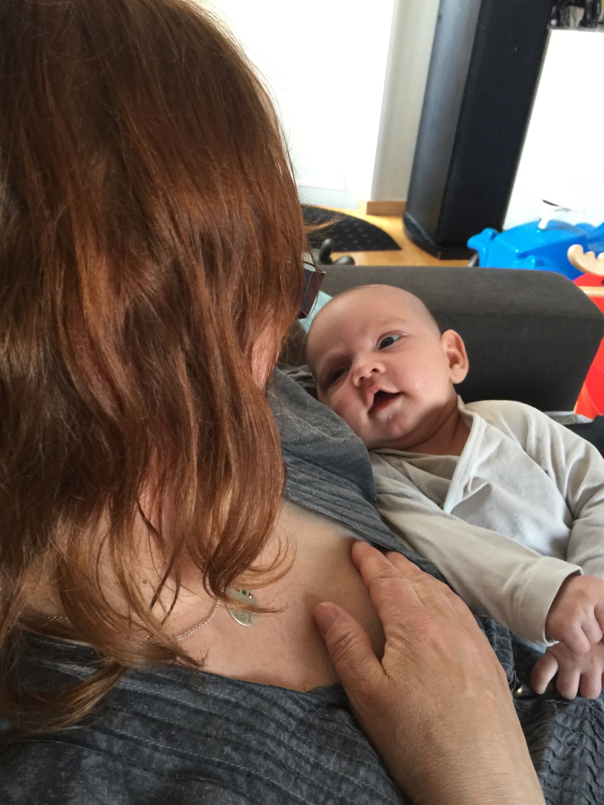 På fm idag var vi på sjukhuset, R skulle med sin farmor på vårdmöte, jag, Smasken och Ebba tog en fika nere vid restaurangerna!