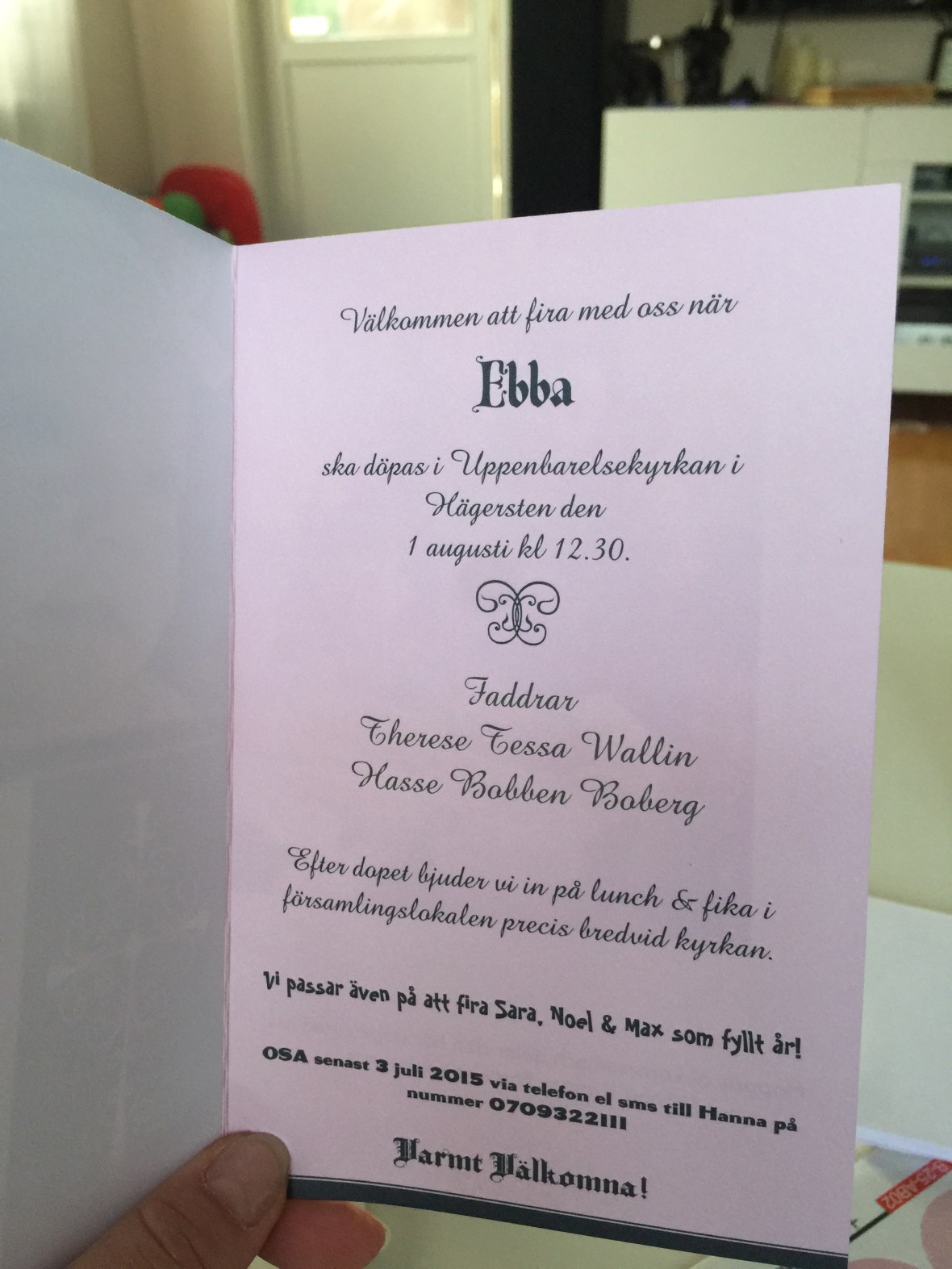 Idag kom inbjudningskorten till Ebbas dop!! Dom blev hur fina som helst!!