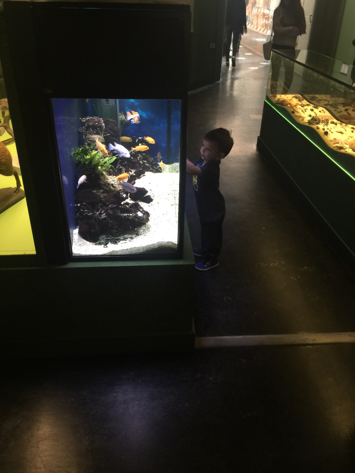 Men annars hade vi en trevlig och mysig dag tillsammans, fick se en del, känna på andra saker, så det var ganska okej ändå.. Max var så rolig, det han tyckte var roligast att titta på var ett helt vanligt akvarium med vanliga fiskar!!