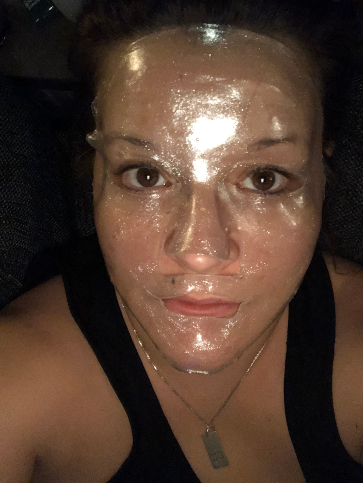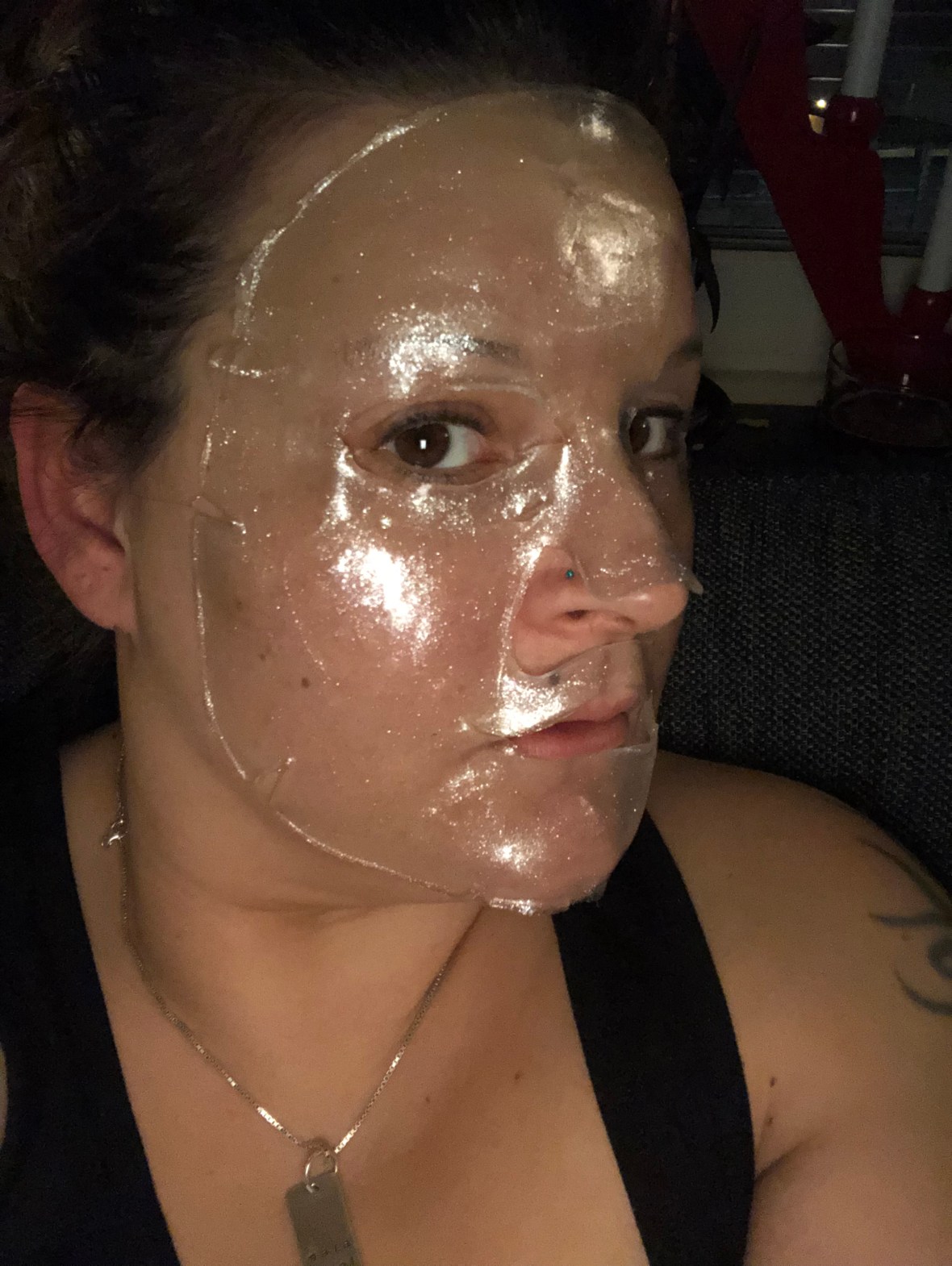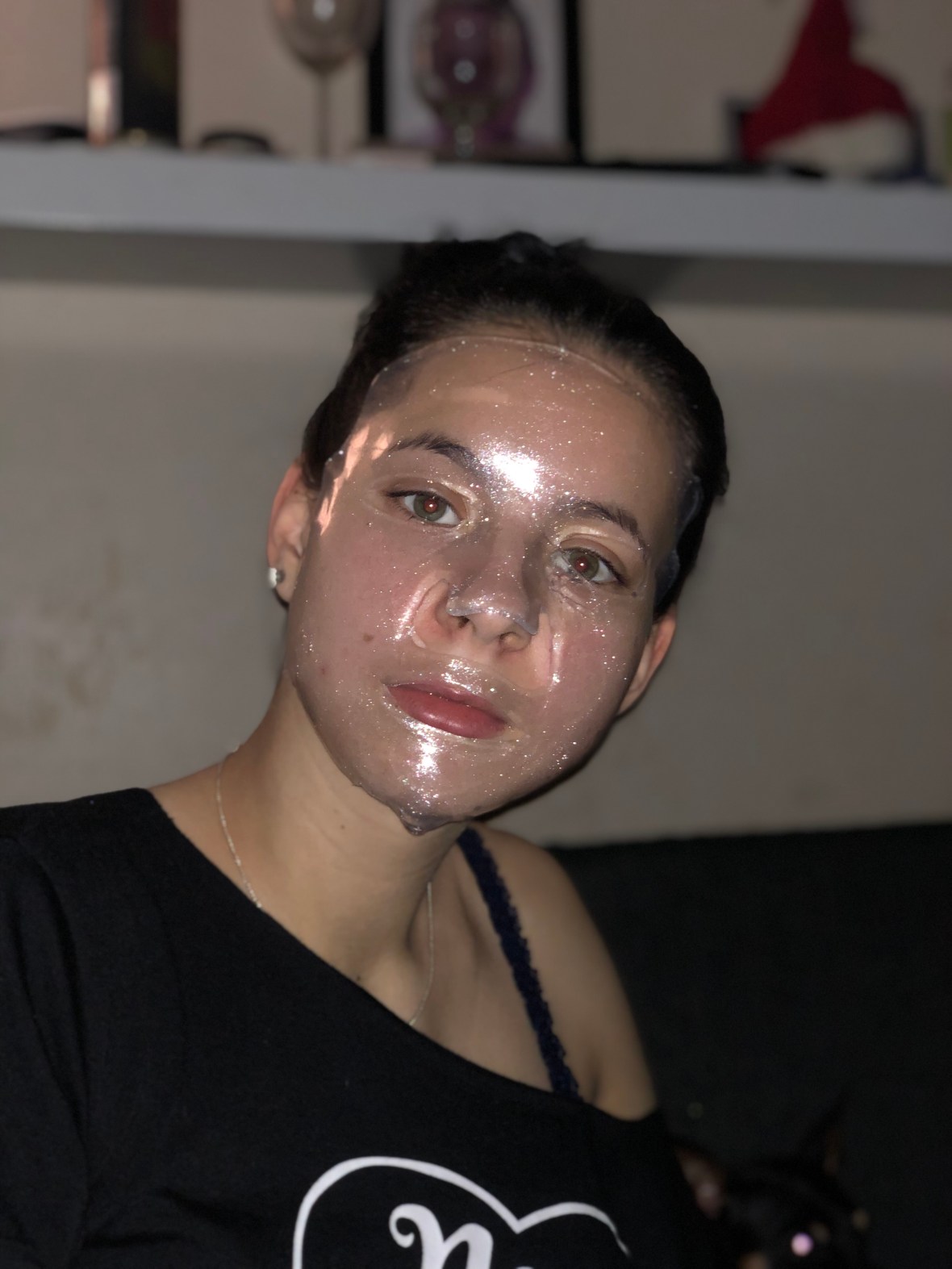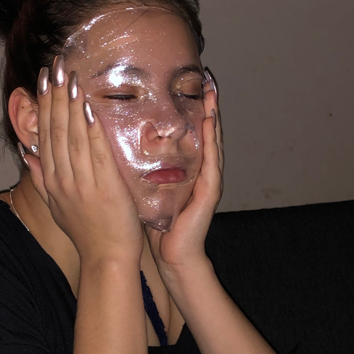 Man blir verkligen återfuktad och mjuk i huden, samt att den här masken gav lite extra lyster med glitter i sekretet.