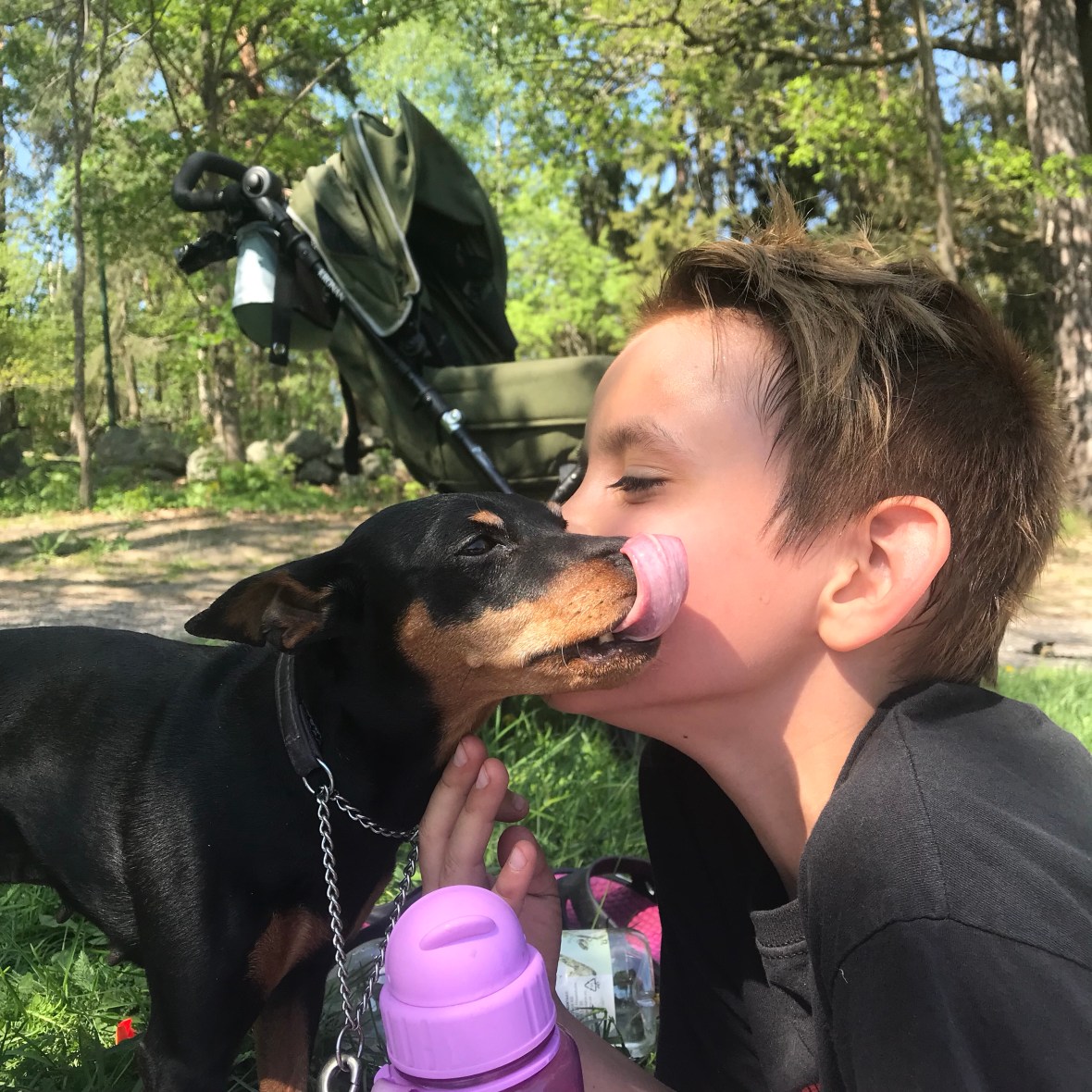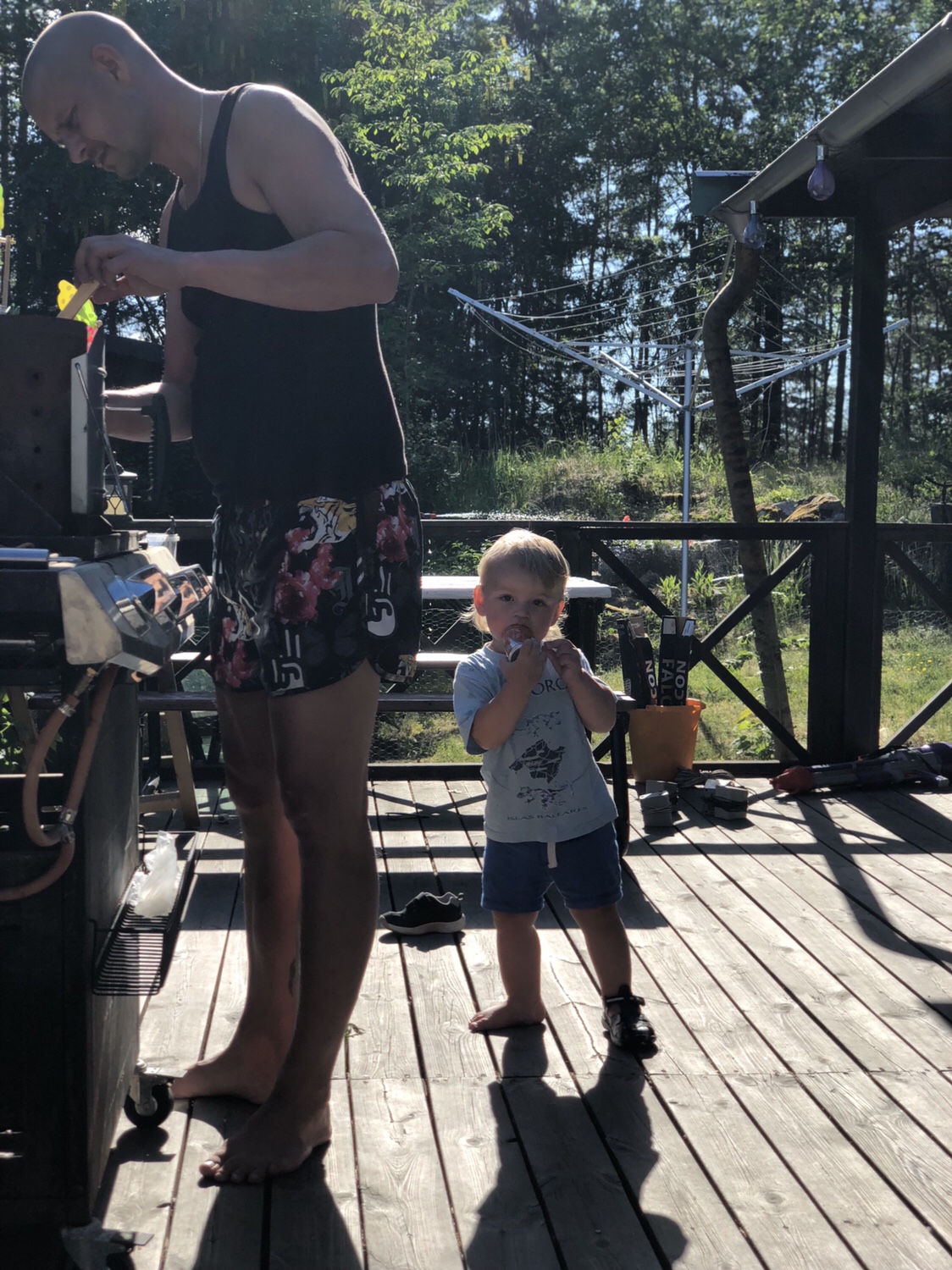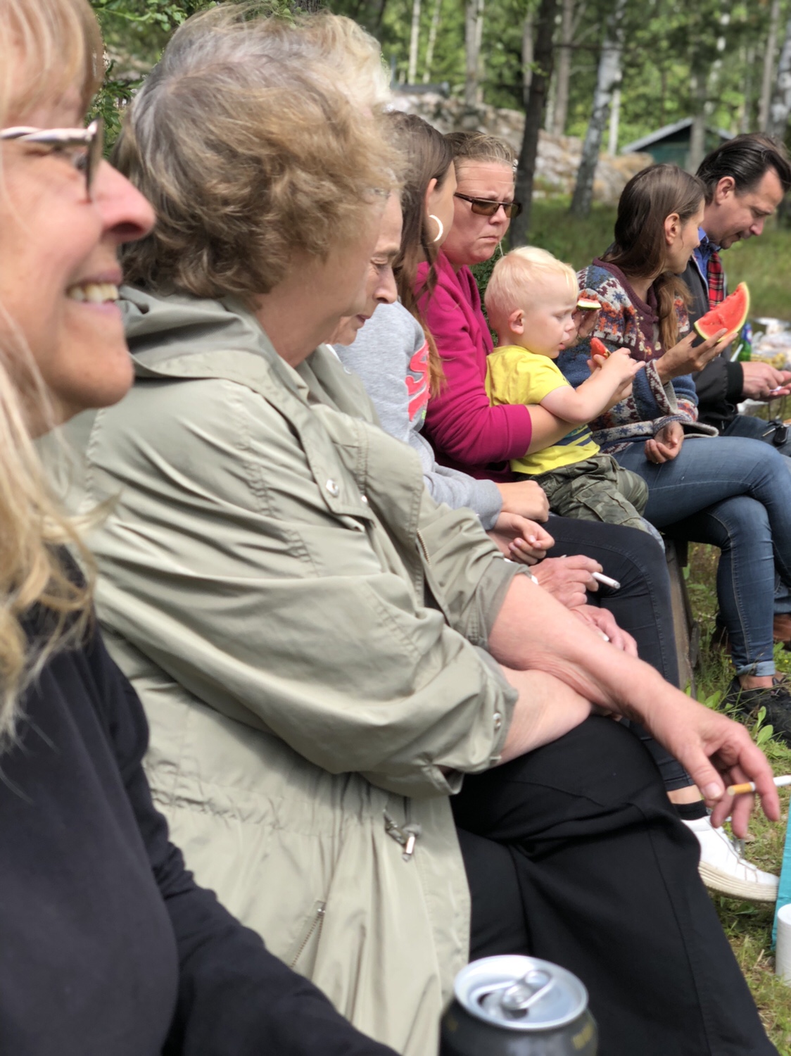 Igår kväll kom Attis och barn över. Då hade Noel hängt med dom typ hela dagen. Så vi satt på altan, drack lite bubbel och bara pratade. Himla härlig tjej Attis. Vi har mycket gemensamt och jag är imponerad av hennes styrka. Ensamstående med 3 barn, depression och ångest, men alltid ett stort leende och fart och fläkt. Diana kom ut igår med lilla Jasmine, så jag hann med att pussa och hålla lite i bebisen 🙂
