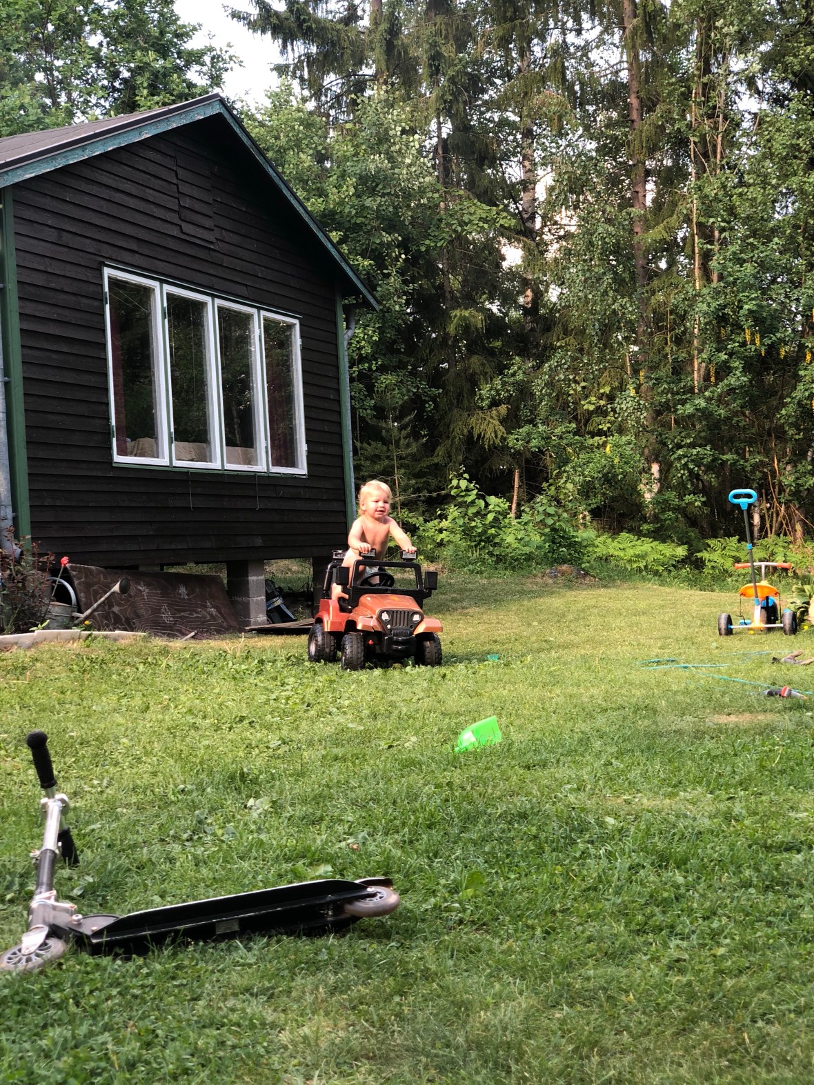 Varför har jag varit så dålig på att åka ut hut i år? Jo, iof, skolan har tagit mycket tid, så nu uppskattar jag landet mer när jag är ledig. Det blir så annorlunda för barnen, de kan leka massor och hela tiden aktivera sig. Jag behöver knappt ”ta hand om mina minsta”… De leker så bra, hittar på något hela tiden. Det är faktiskt underbart.