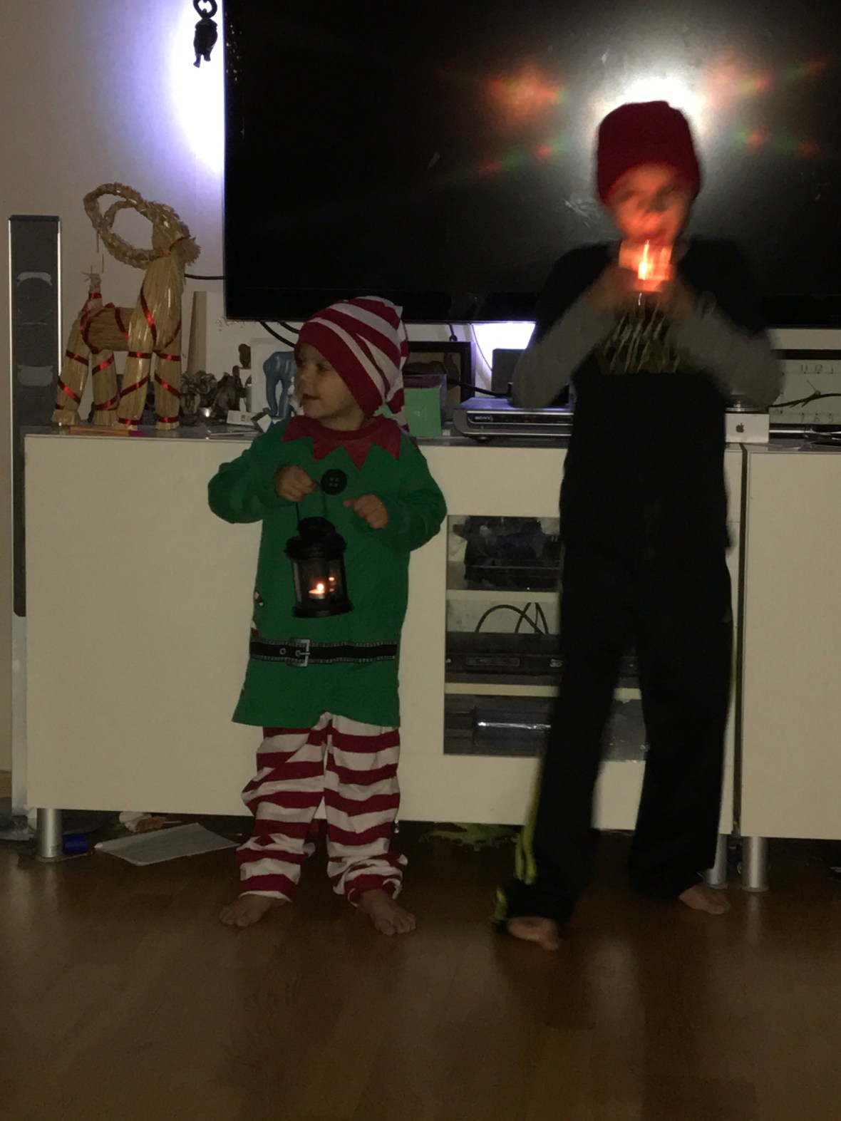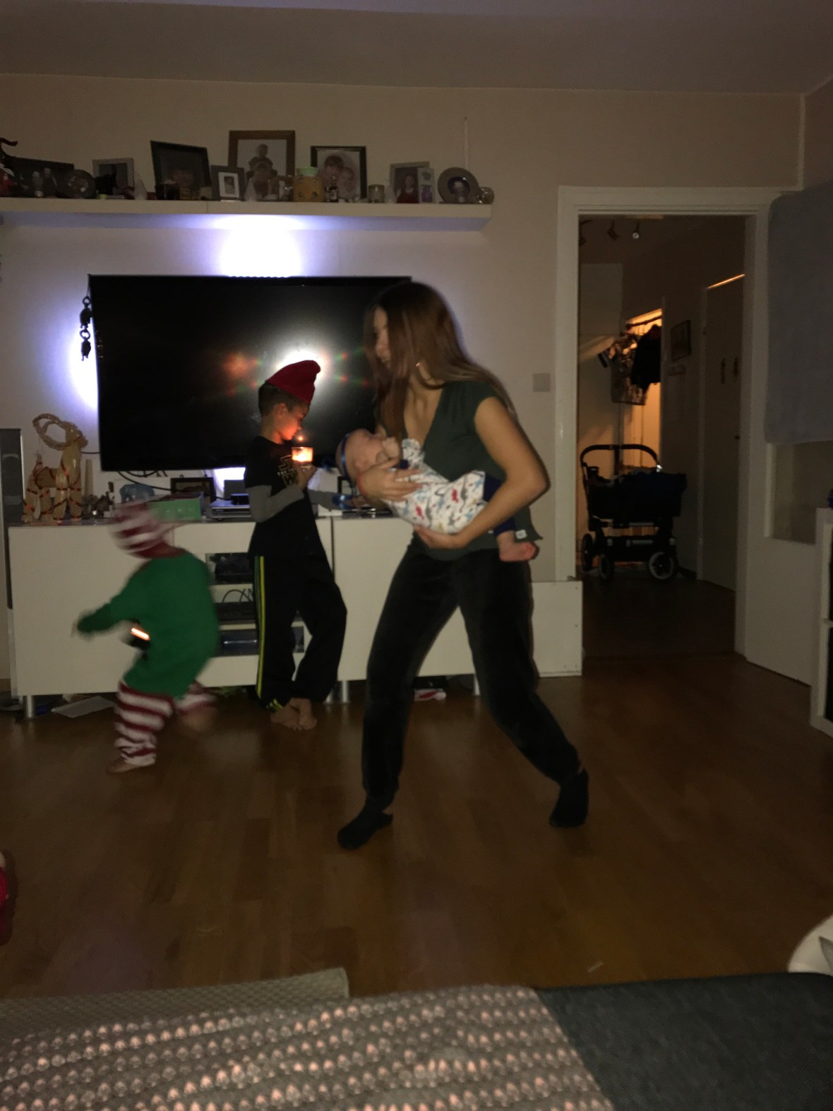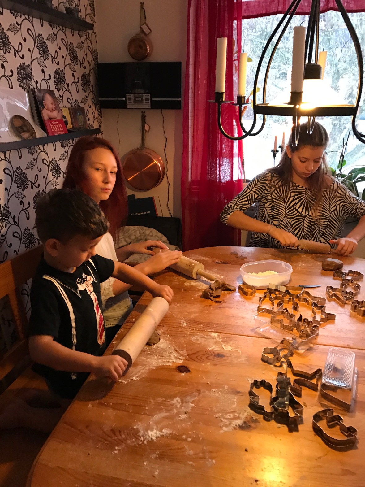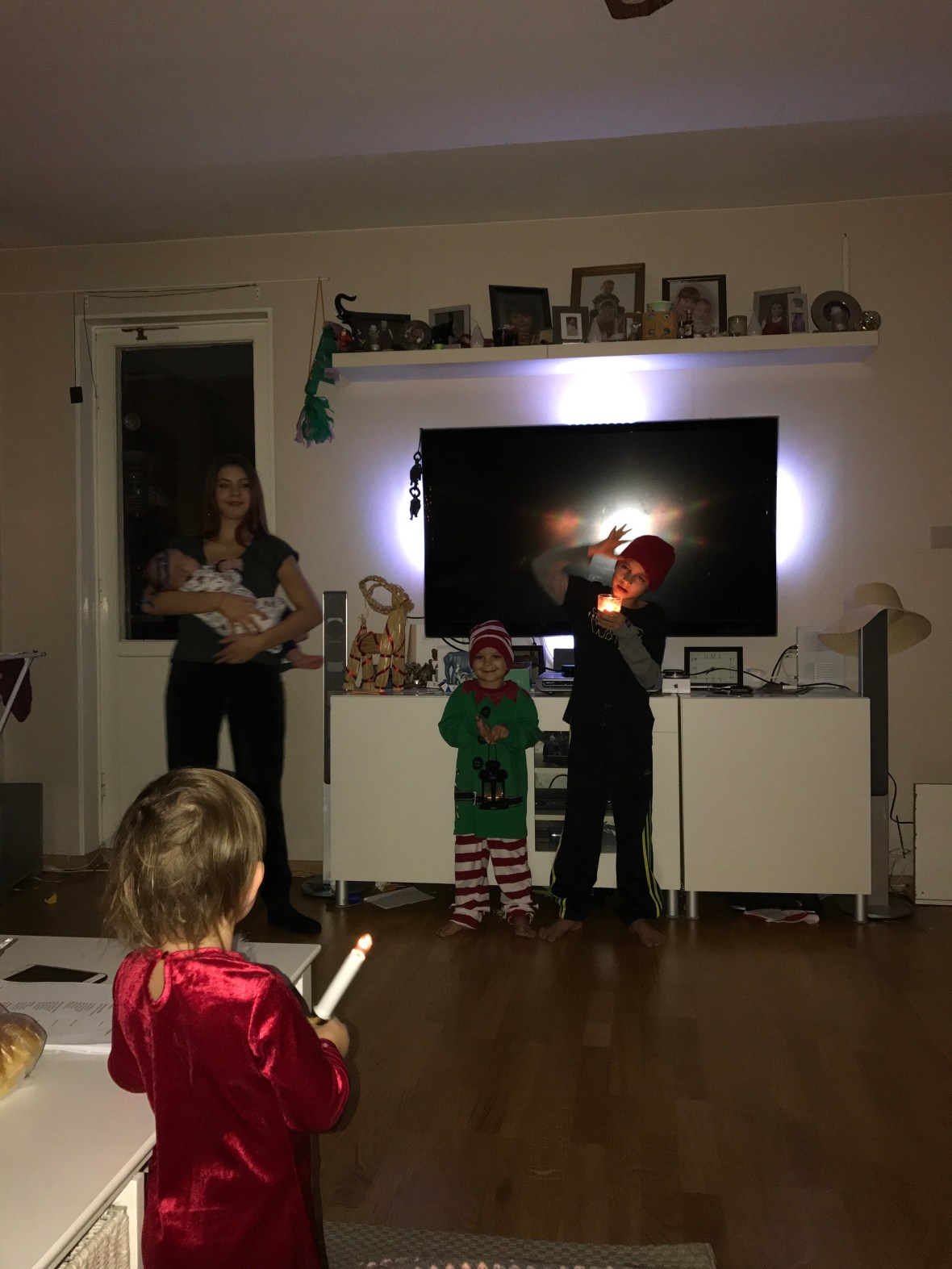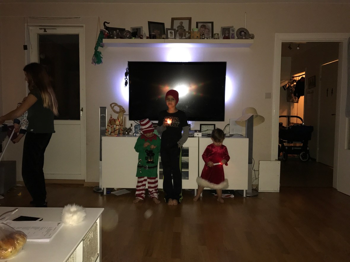 Ikväll var R ute med jobbet. Dom körde GoCart och åt på O’Learys i Kista. Det var deras ”julbord” från jobbet. Lite tråkigt tycker jag, julbord är ju julbord, inte hamburgare på O’Learys. R tycker lite likadant, men hade trevligt iaf. Jag och barnen åt tacos & sen godis & chips till dom. Mamma kom och hälsa på vid 19.30 och gick väl runt 21.30. Sara drog till kvällsgården, Max & Ebba somnade redan innan 21 & Noel gick å la sig innan mamma gick. Blev helt paff, hade förväntat mig en pain-in-the-ass kväll, men det var bara jag och Sigge som låg på soffan och slötittade på Idol. Grattis Liam förresten. R kom hem tidigt oxå, runt 22.10.. Imorgon ska barnen och R bygga ihop pepparkakshus och Sigge o jag kommer nog slöa i soffan :). Jag har typ noll koncentration att lägga på peppis-hus-bygge..