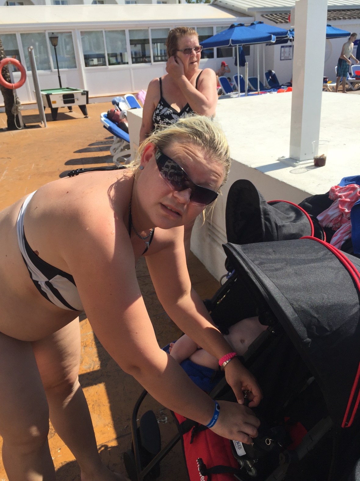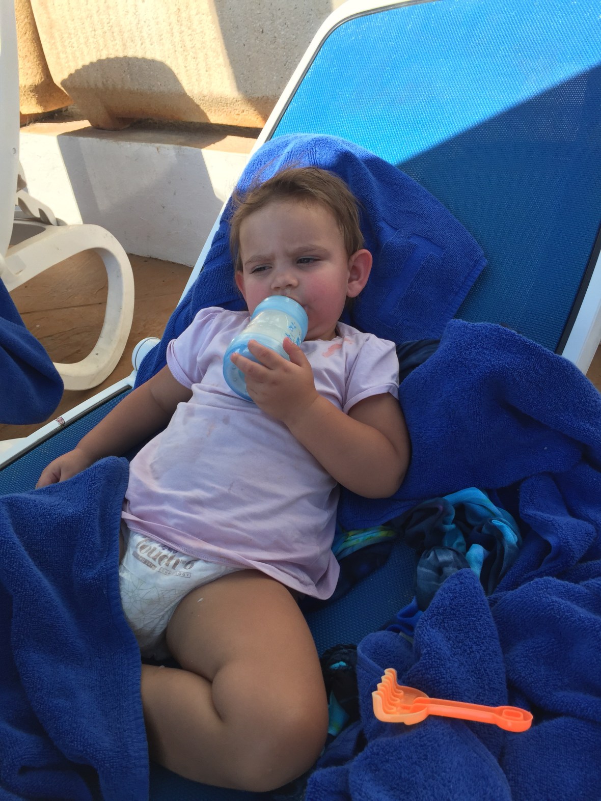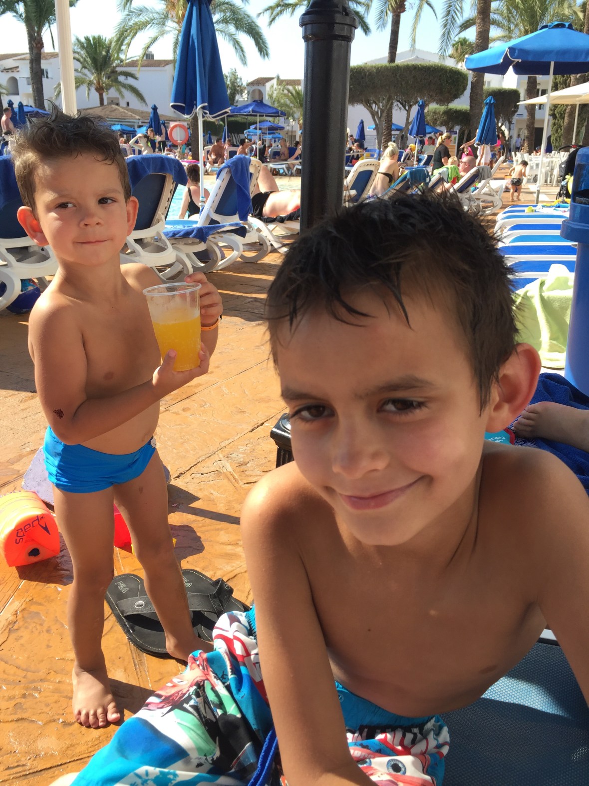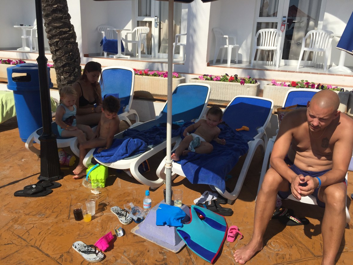 Idag 4/9-16 har varit betydligt trevligare. Vi har hela dagen suttit vid poolen. Max har blivit helt badtokig, hoppar, simmar, leker! Fantastiskt roligt att se! Ebba är som en gremlins, tror att bada i pool är helt livsfarligt och slår typ bakut om hon får vatten på sig! Sara och Beccis drar iväg på egen hand och kommer och säger Hej då och då. Likaså Noel och Simon!! Jätteskojigt! Jag har fått massa färg idag och då sitter jag bara under parasoll, enda ggn jag får sol på mig är när jag badar, men solen här tar verkligen sjukt mycket, oavsett skugga eller sol. Mitt ansikte brände helt sjukt så jag var väldigt tacksam över att vi har aloe Vera med oss 🙂