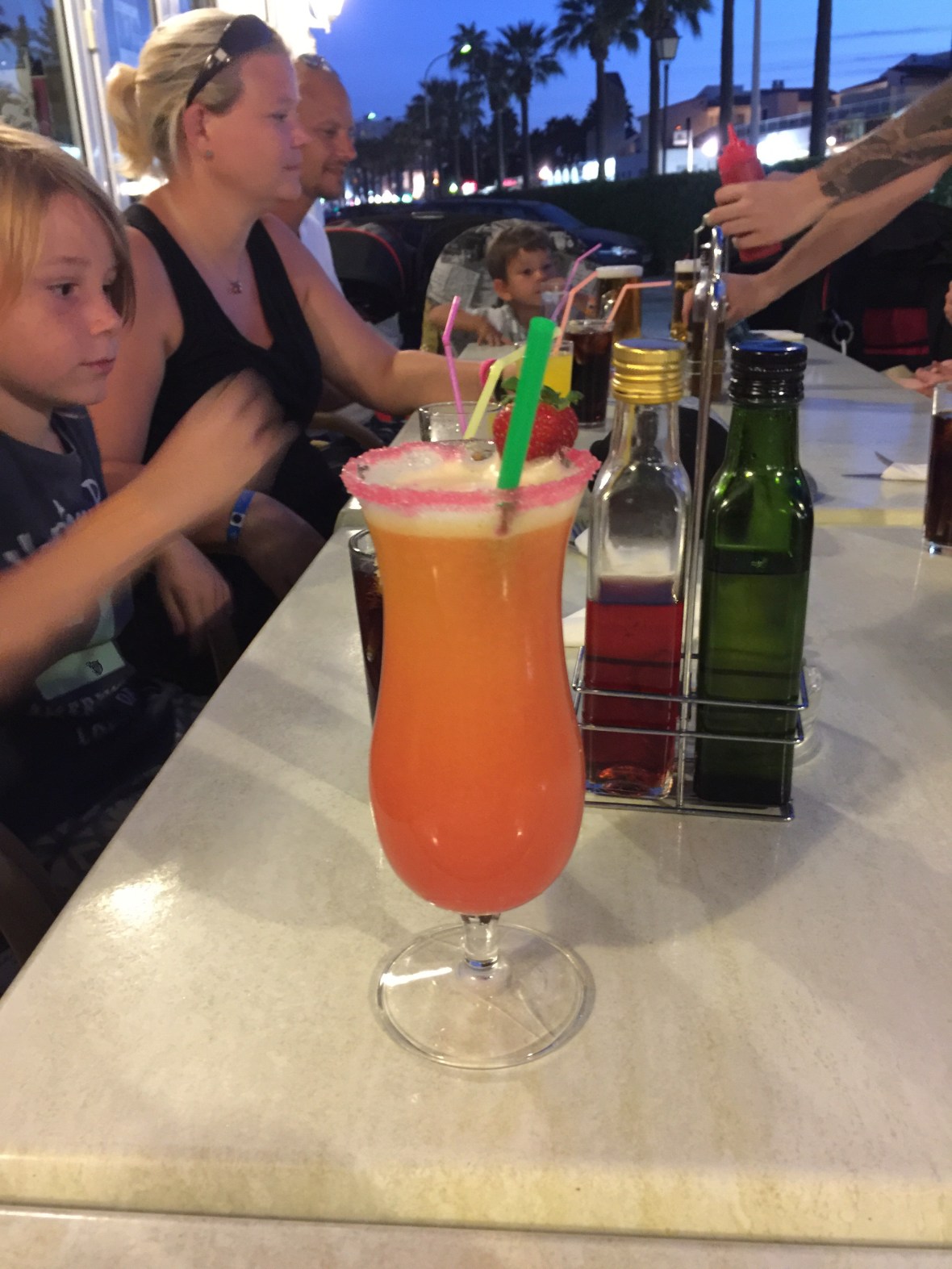 Innan vi återvände till hotellet stannade vi på en glassbar kombinerad med ”vanlig” bar och jag, Ebba, Max & Becks tog varsin slush, Sara & Noel glass, Robert, Mattias & Maud en irish coffe..⤵️