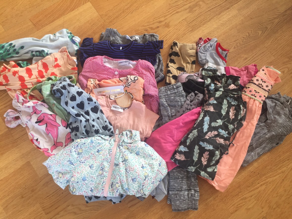 Klädpaketet innehöll 11 Mini Rodini plagg och 12 ot-märken, såldes för 2000:-. Nu är det iof väldigt billigt för MR, men var i behov av pengarna snabbt och alla mina absoluta godbitar den MR ligger tryggt kvar i min garderob. Eller Ebbas & Max’s garderob. Såklart! Fast lite ångest fick jag nog allt när mössen & perriot gick iväg ut genom dörren!! Men, nu kan jag istället vänta o se vad för filur som bott inuti mig och sen köpa nytt begangnat till baby5. Har 3 bodys och 2 par byxor i MR klart till nykomlingen redan 👏🏻