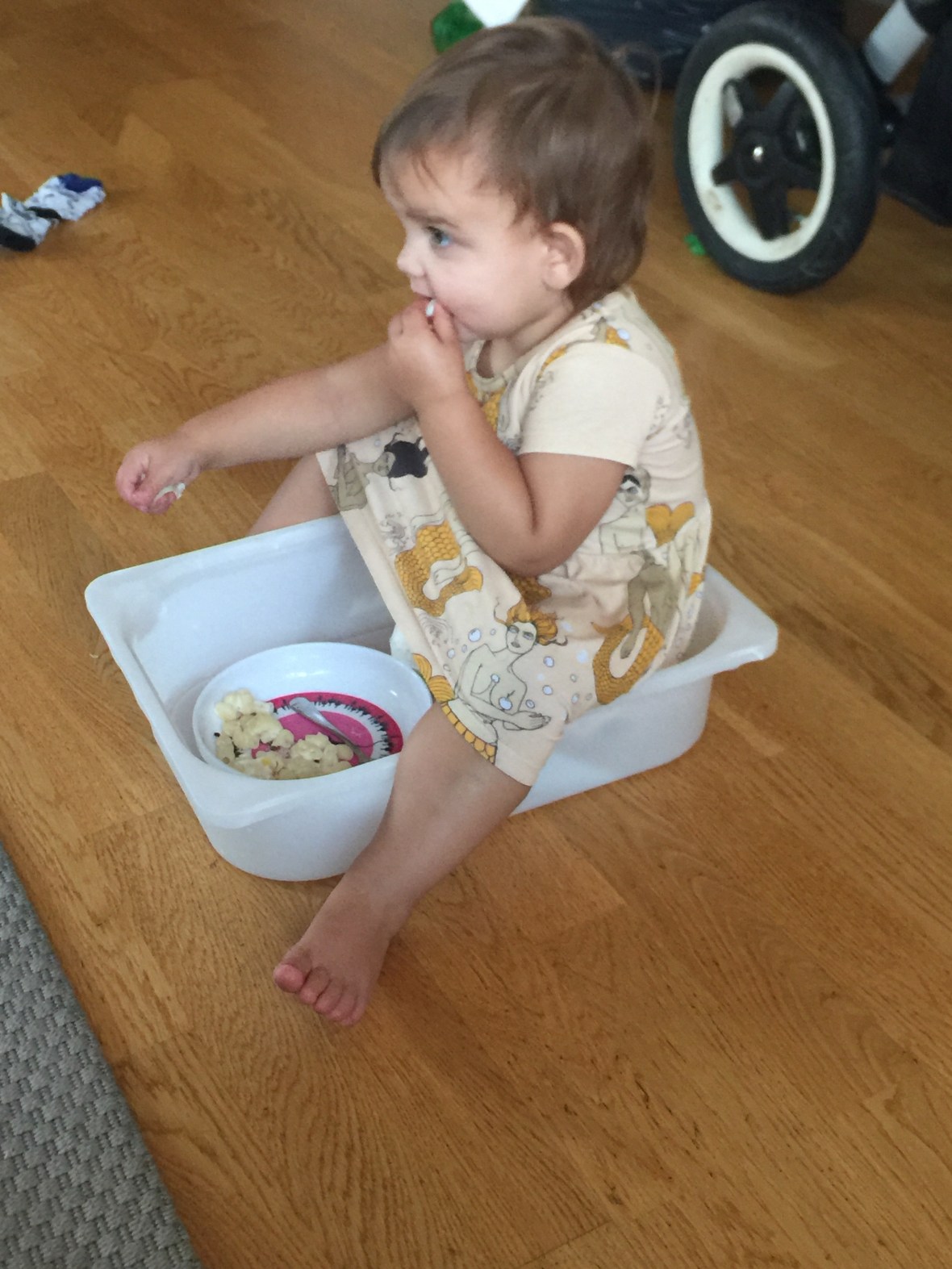Idag var det Lions Loppmarknad i Nykvarn! Alltid lika roligt att gå på. Det finns alltid någonting att köpa! Alltid! Idag blev det en kundvagn i plast till barnen, träklossar med bil, en byrå till leksakerna här på landet, ett överkast till mamma, två barnkuddar och en vanlig kudde (hem), dra-på-lakan till spjälsäng med matchande örngott (hem) & en lampa (hem).. R hittade ett plättlagg i gjutjärn och en potatispress. Vi gick knappt en timme, det räckte gott å väl. Var en hel del folk, men inte så det vart jobbigt.. Vi gick miste om en stor canvastavla i svartvitt med motivet av en tiger! Sara ville så gärna ha den, men någon annan hann före, så är det ibland.