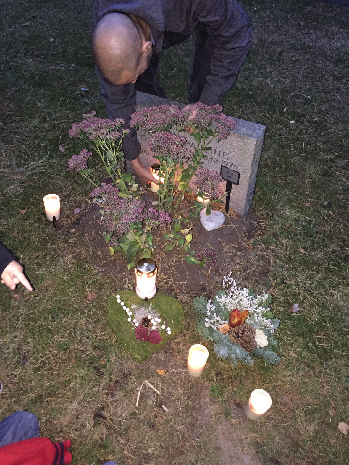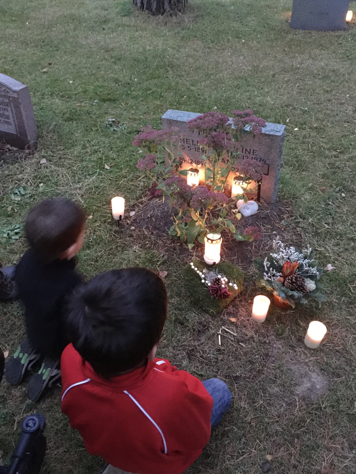 Efter en ganska tidig middag så åkte vi till Svärfar på kyrkogården, tände ljus och önskade honom Grattis på hans dag! Det lyste så vackert med ljus bland gravarna och i minneslunden. Ljus som lyser ännu efter alla helgons dag då alla åkte och tände ljus! Tycker det är så vackert.. En kyrkogård blir mindre skrämmande när det brinner ljus vid varje sten.