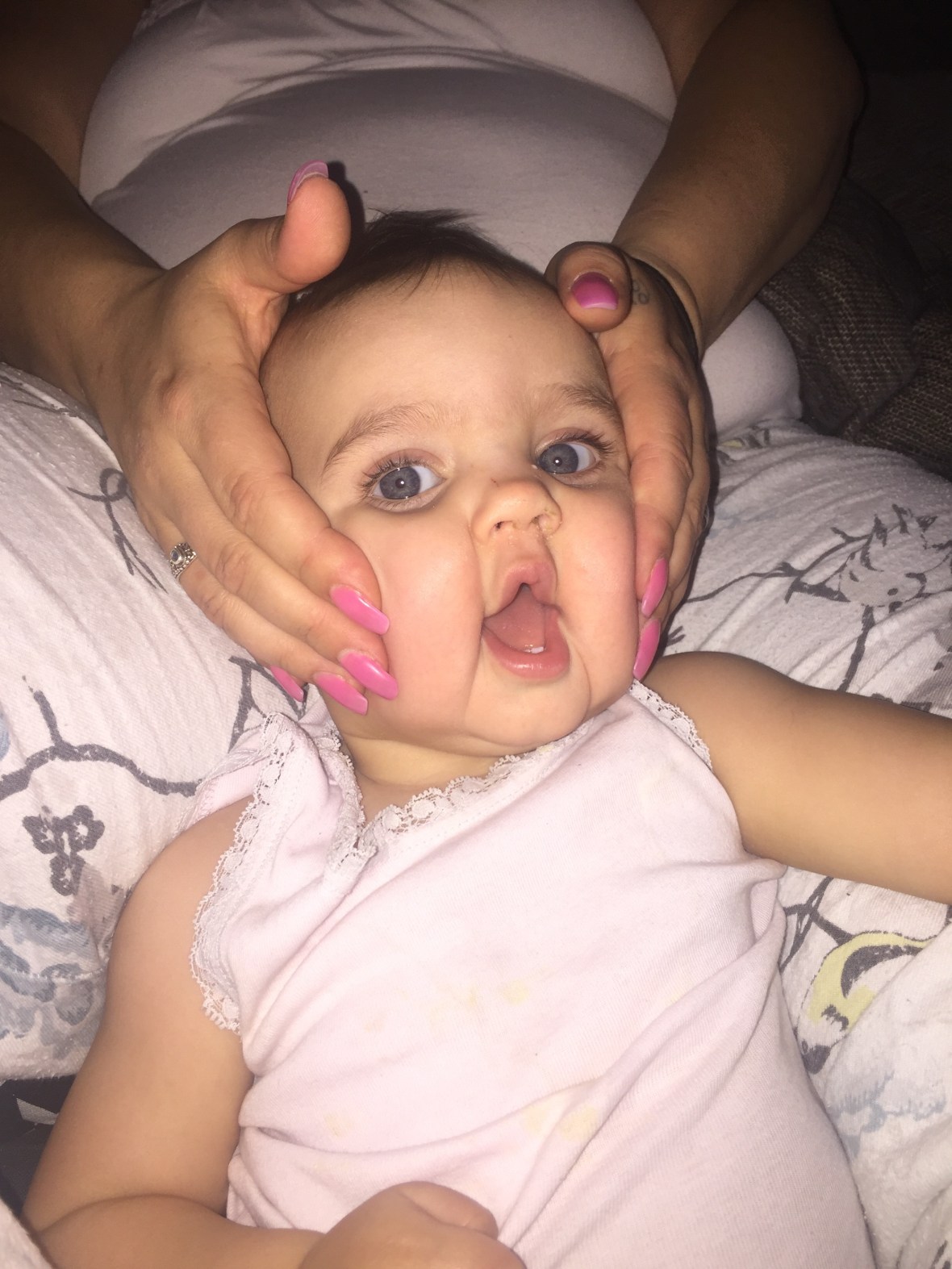 Igår gjorde vi grimarser i hennes ansikte, kan låta knäppt, men ingen blev skadad under sessionen😆