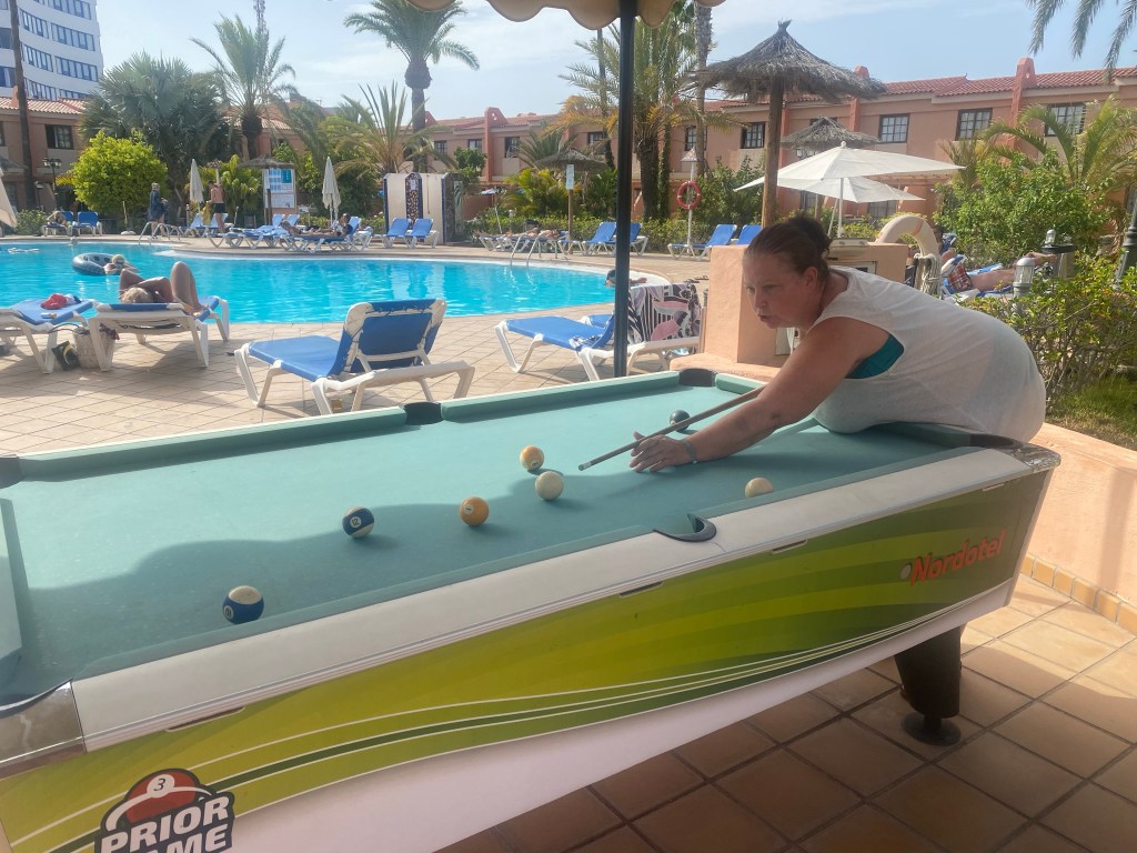 Vi har spelat Bonanza, Svarte Petter och ett nytt kortspel jag lärt mig som heter ”Din mamma”. Superskojsigt spel! Många kvällar blev det sällskapsspel, även Yatzy.. Jag förlorade i typ allt, men hade lika kul för det. Några av dagarna tog jag min bok och gick de där 15 stegen upp till poolen o parkerade mitt arsle i en solsäng o låg där några timmar. En dag sov jag nästan hela dagen. Dels för att fullmånen ”fuckade” min sömn dagarna innan så jag tog igen det ett helt dygn nästan. Det var nog välbehövligt.