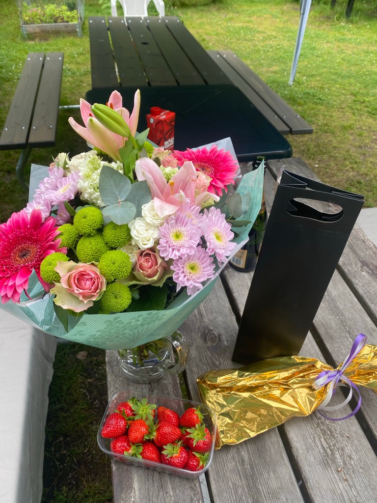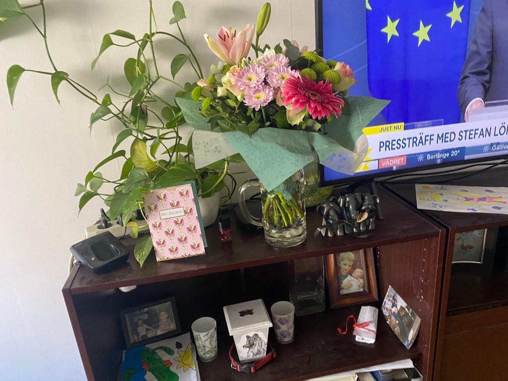 Stora S och tre små troll som väckte mig med blommor, en giffel med ett ljus i och sång, mina fina ungar som vill att jag ska bli firad. N ringde tillsammans med mamma och Leon och sjöng. Så gulligt! Men ändå är det så svårt att verkligen njuta och känna glädje och tacksamhet till de som är runt mig idag. Jag är så himla traumatiserad från de 11 jävla åren i fosterfamilj, att jag inte kan släppa den negativa spiralen som dom planterade i mitt huvud! Fan vad jag verkligen hatar den där människan. Hon borde aldrig varit godkänd för att ens skaffa egna barn och ännu mindre fått ta sig an mig och min bror. Jävla kossa!