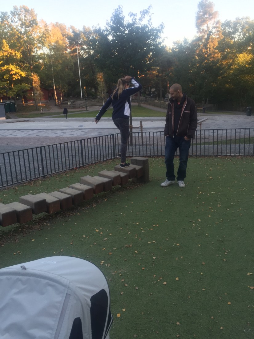 Igår hade Noel fotbollsträning. Vi åkte med ner hela familjen. Medans Noel träna så gick vi andra upp till Aspuddsparken och lekte! Hade riktigt roligt faktiskt!