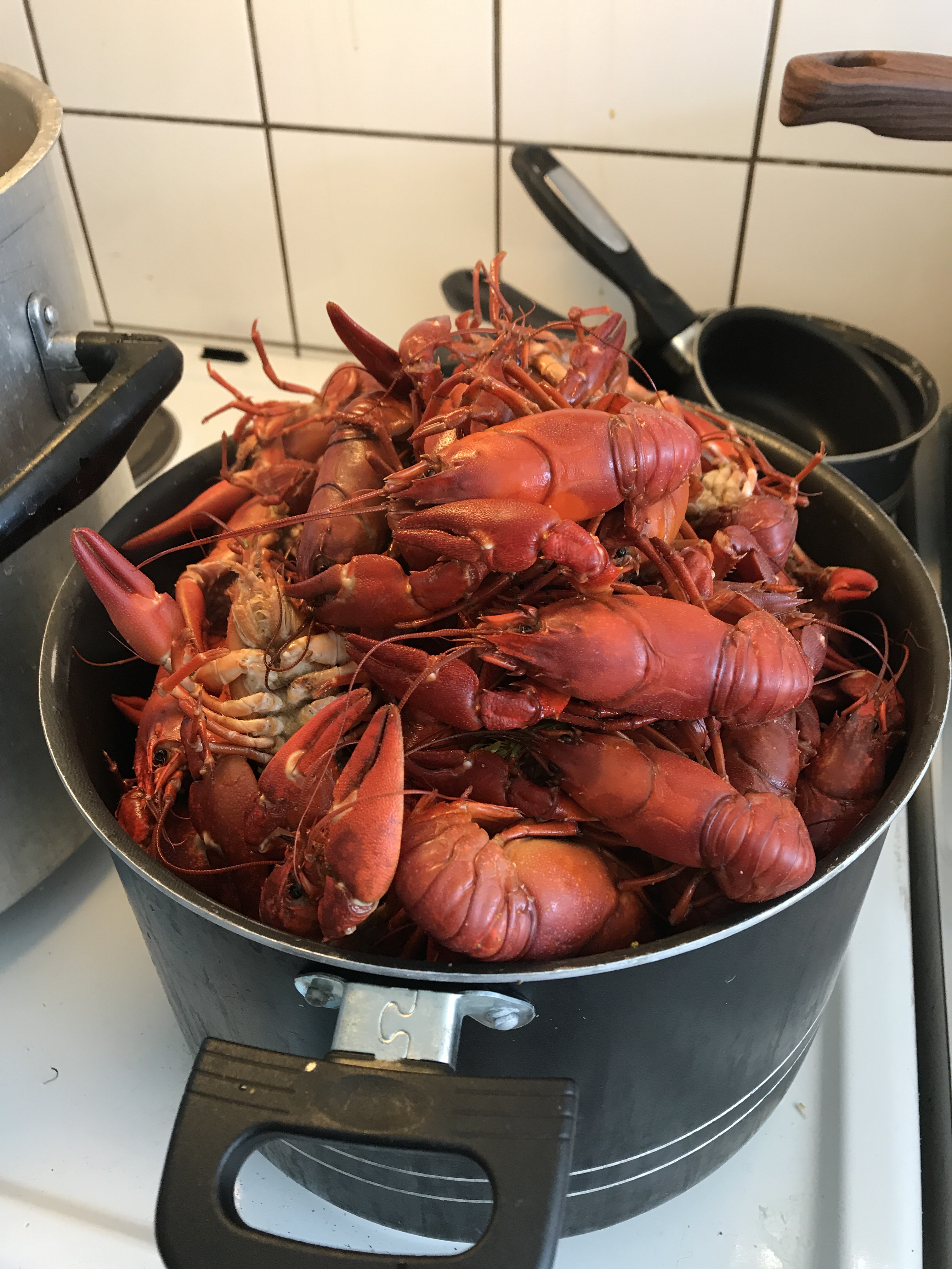 Under tiden jag satt ensam såg jag att Jerry sökte lekkamrater så jag bjöd in honom på kräftskiva! Han kom runt 19 tiden och då käkade vi 🙂