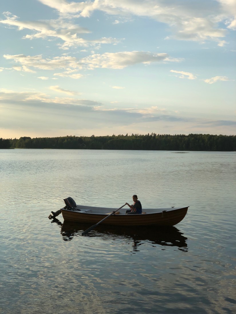 R tog båten ut till ett grund som ligger mitt i sjön och där klev Mackan av och R fotade! Riktigt grymma bilder.