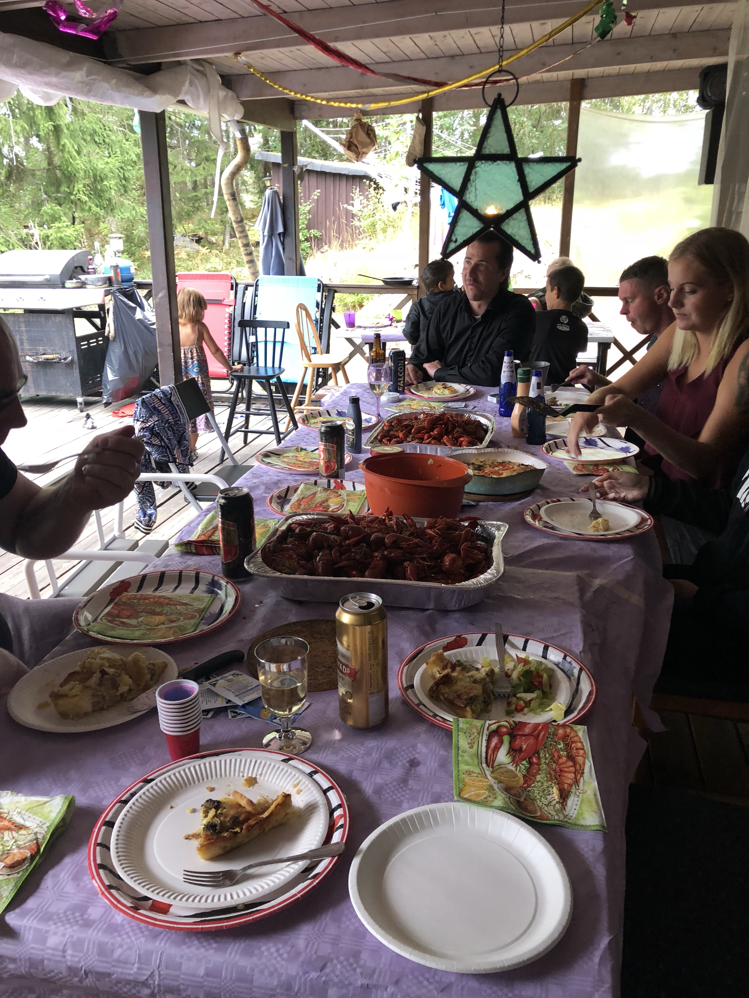Har haft en mini kräftskiva med härliga människor utanför mammas hus. Blev mer glada människor än väntat, och kanske just därför det blev så himla kul? När det egentligen är helt ”oplanerat”? Meningen var bara vi och Peter. Men så kom några till förbi och det blev ju riktigt trevligt.